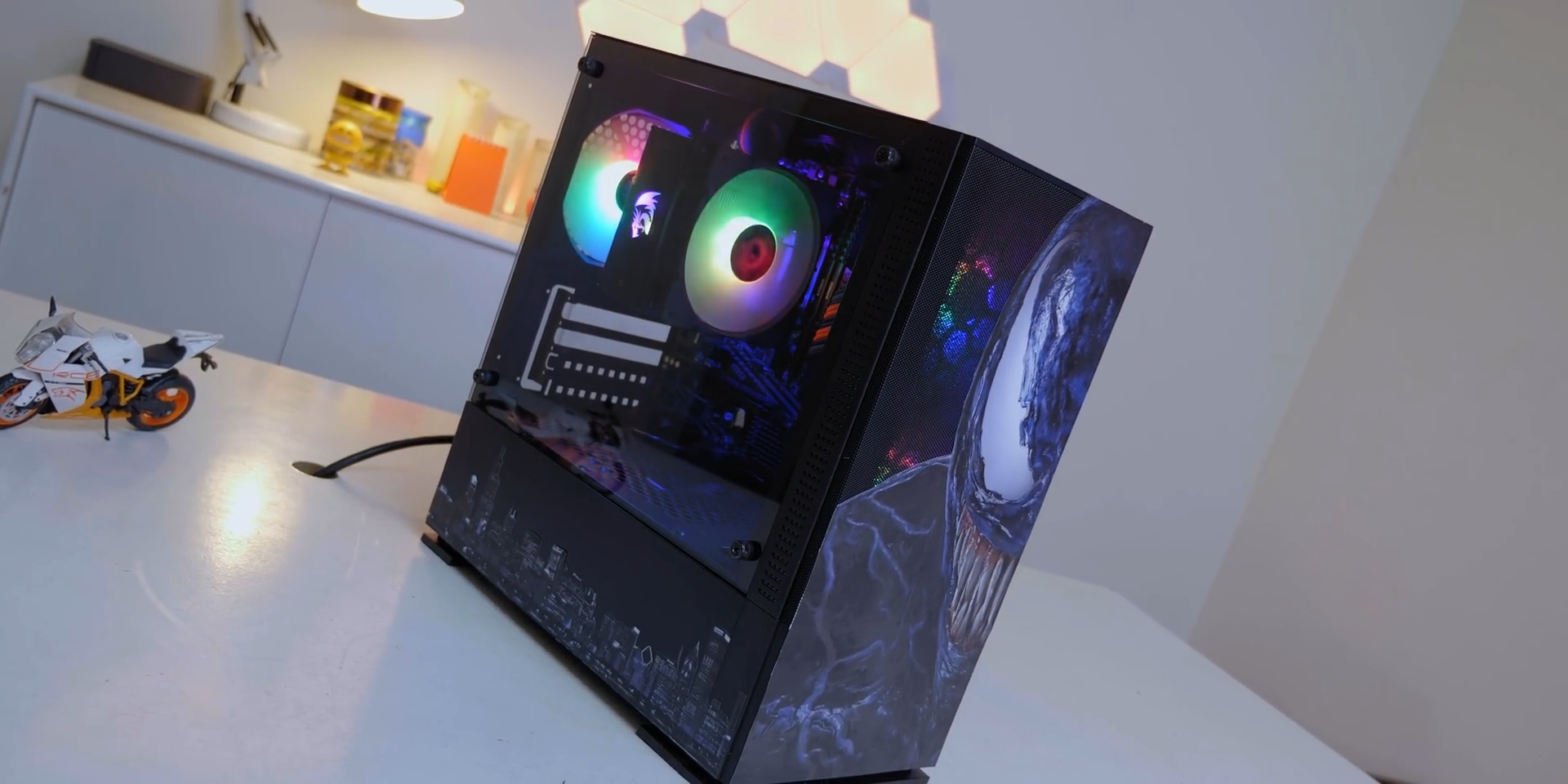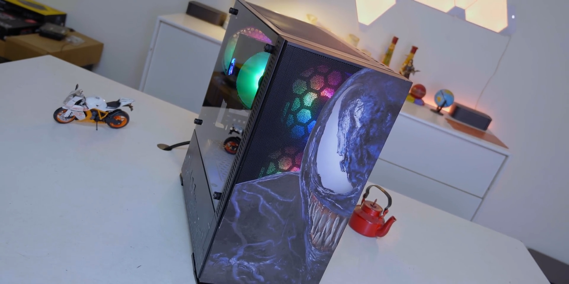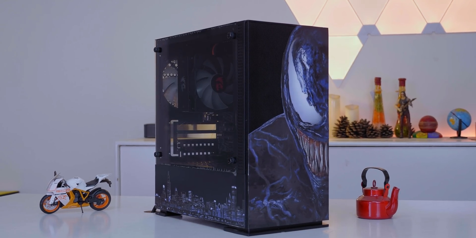 আজকের বিল্ডের কেস গরীবের বন্ধু খ্যাত Value Top এর VT-B701 কেসিংটি যেটির দাম ২৪৫০ টাকা। এটিকে আমরা কাস্টোমাইজ করে ভেনম থিম দেওয়ার চেষ্টা করেছি। বিল্ডটিতে একটি stealth,bold লুক দেওয়ার চেষ্টা ছিল আমাদের, কিন্ত কেসিং এর ৩টি rainbow Fixed RGB ফ্যান এর জন্য সেই উদ্দেশ্য শেষ পর্যন্ত পুরণ হয়নি। Red Dragon Effect Cooler এর সাথে আমাদের প্রসেসর এই কেসিং এ কতটুকু গরম হয় তা আমরা একটু পর দেখবো।