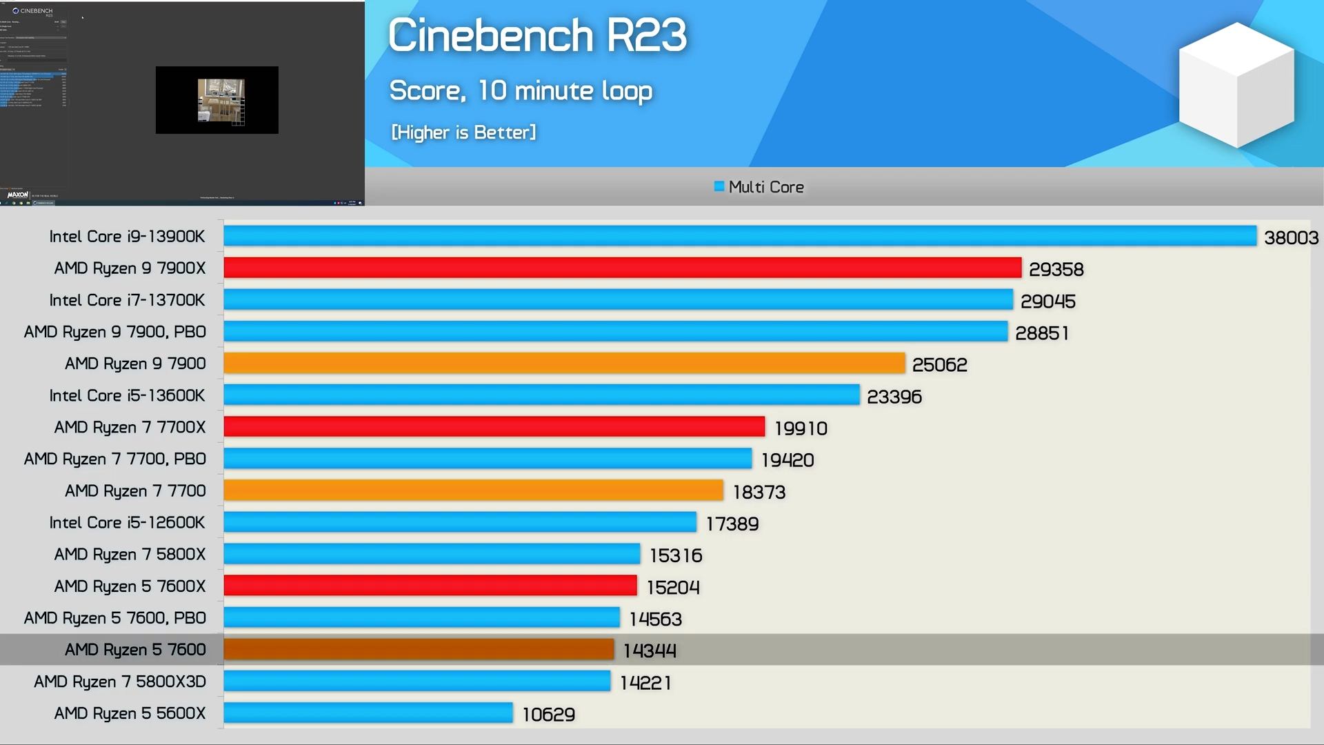 যাই হোক, এবার লঞ্চ করা Ryzen 5 7600 এ দেওয়া হয়েছে ৬ কোর ,১২ থ্রেড। এক্ষেত্রে লক্ষণীয়, ২০১৭ থেকে এই ৫ বছরে এই SKU এর কোর থ্রেড সংখ্যা এখনো বাড়েনি। 3.8 Ghz বেস ক্লক এর প্রসেসরটি সর্বোচ্চ 5.1 Ghz বুস্ট ক্লকে চলবে। রয়েছে ৩২ মেগাবাইট L3 ক্যাশ। TSMC এর 5nm প্রসেসে তৈরী এই প্রসেসরটির টিডিপি ৬৫ ওয়াট।