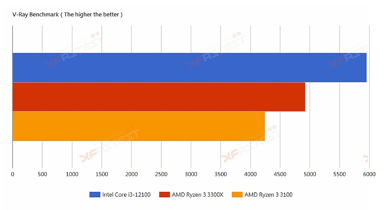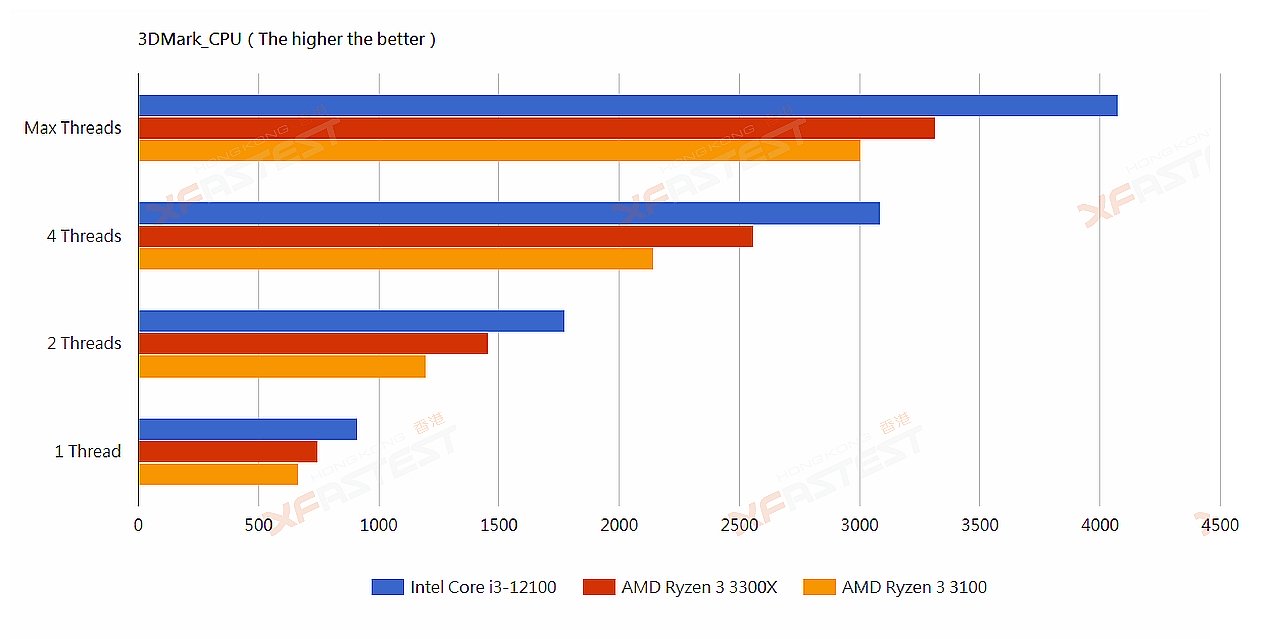 cinebench এর multicore এ i3 12100 এর score 8500+ ,এর বিপরীতে Ryzen 3 3300x,3100 এর মার্ক মাত্র ৬৭০০~ ও ৬০০০ যথাক্রমে। একই রকম চিত্র দেখা যাচ্ছে single core test এও, এখানেও চোখে পড়ার মত ব্যবধানে এগিয়ে রয়েছে intel core i3 12100।