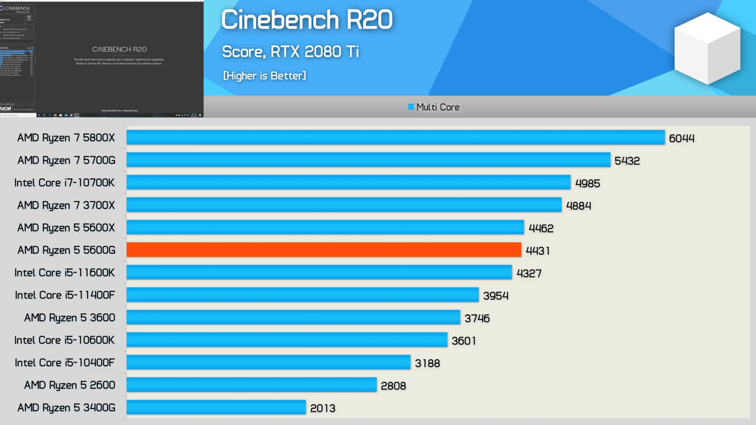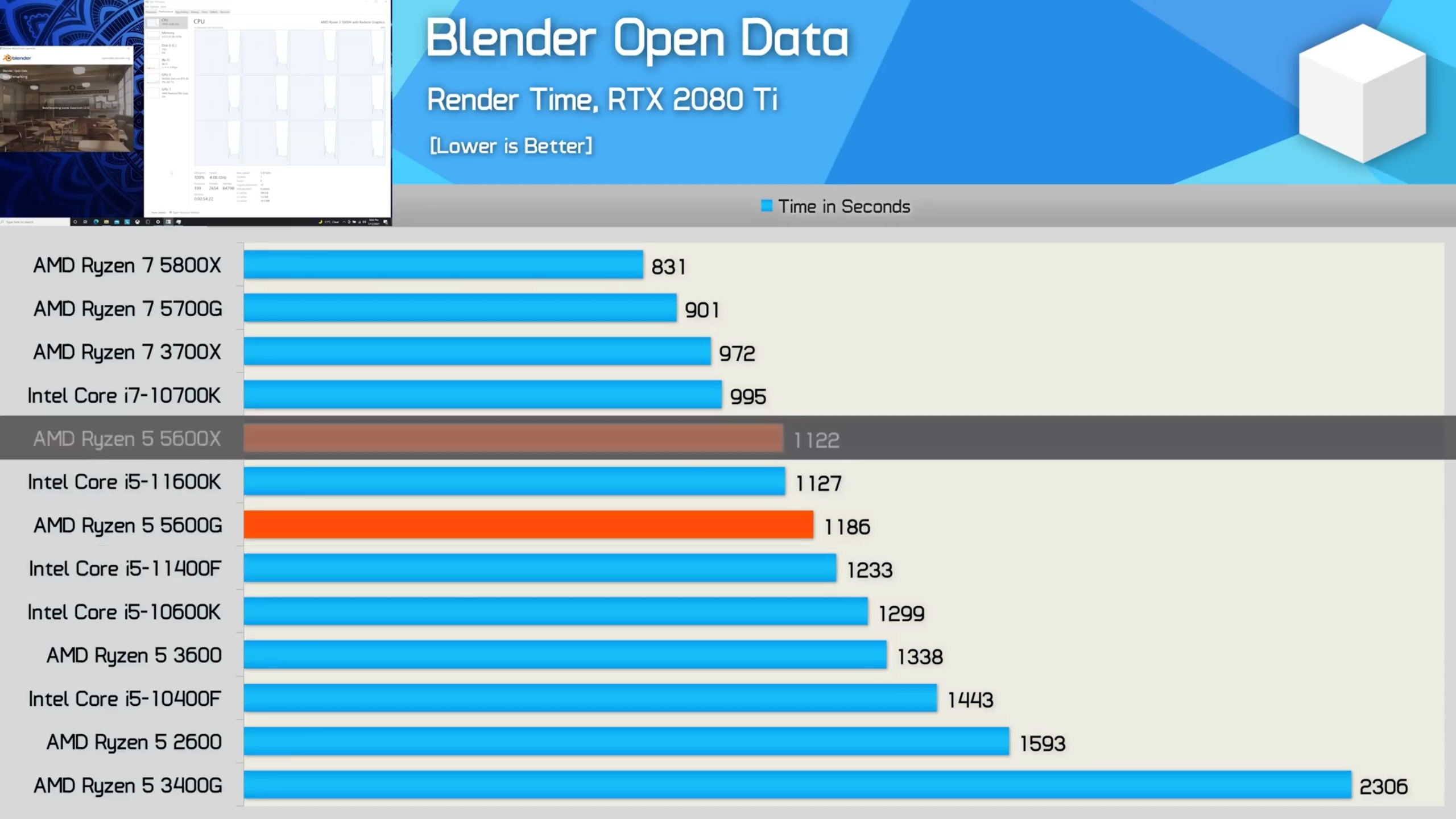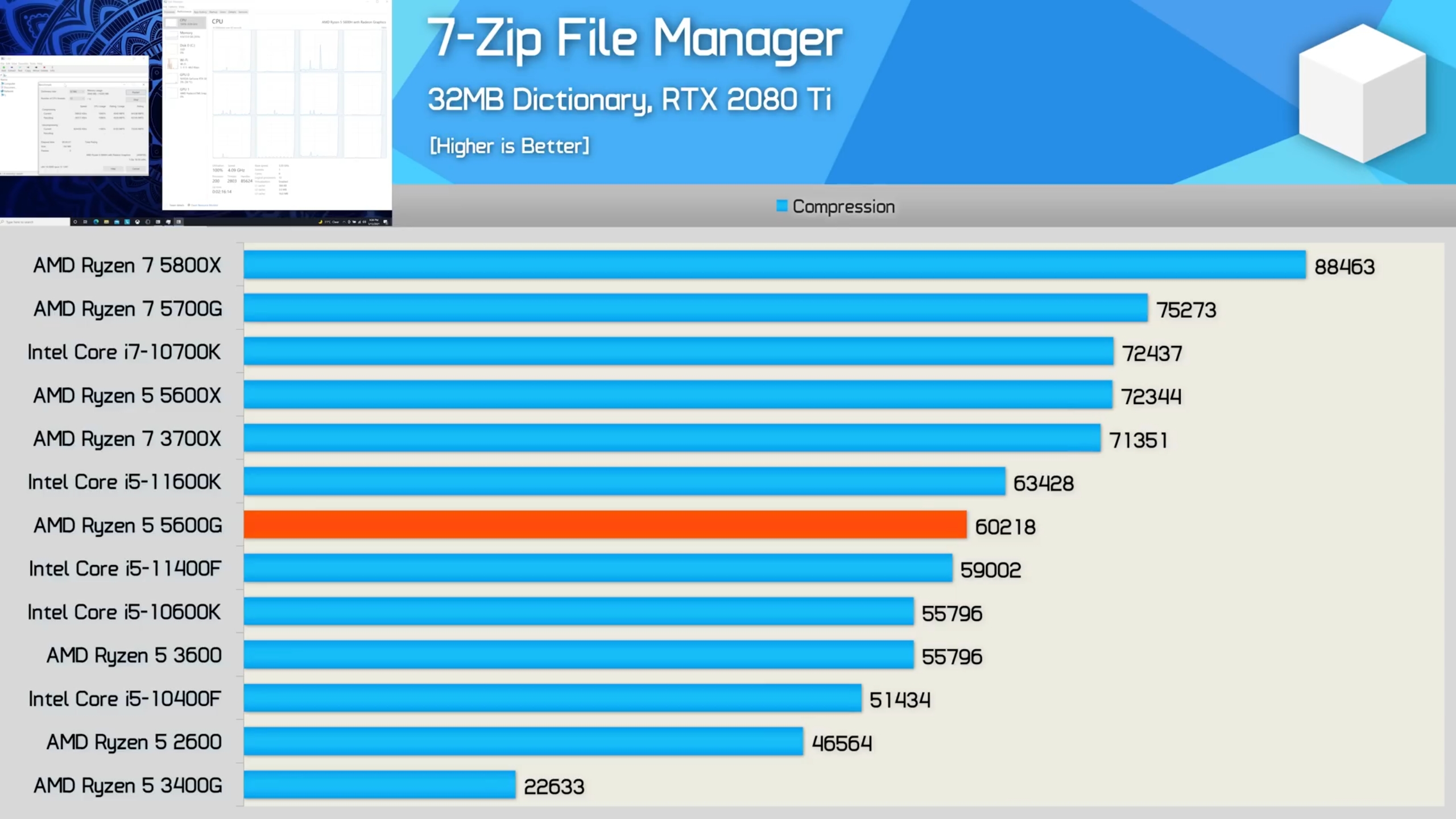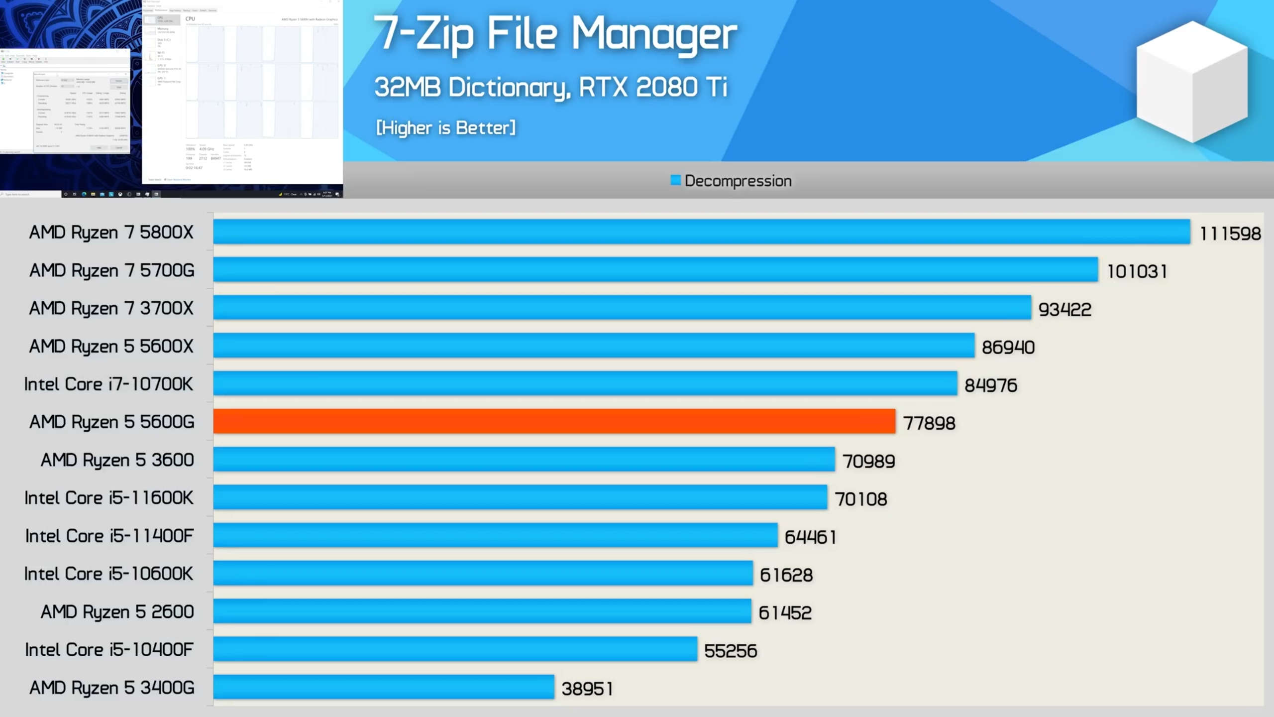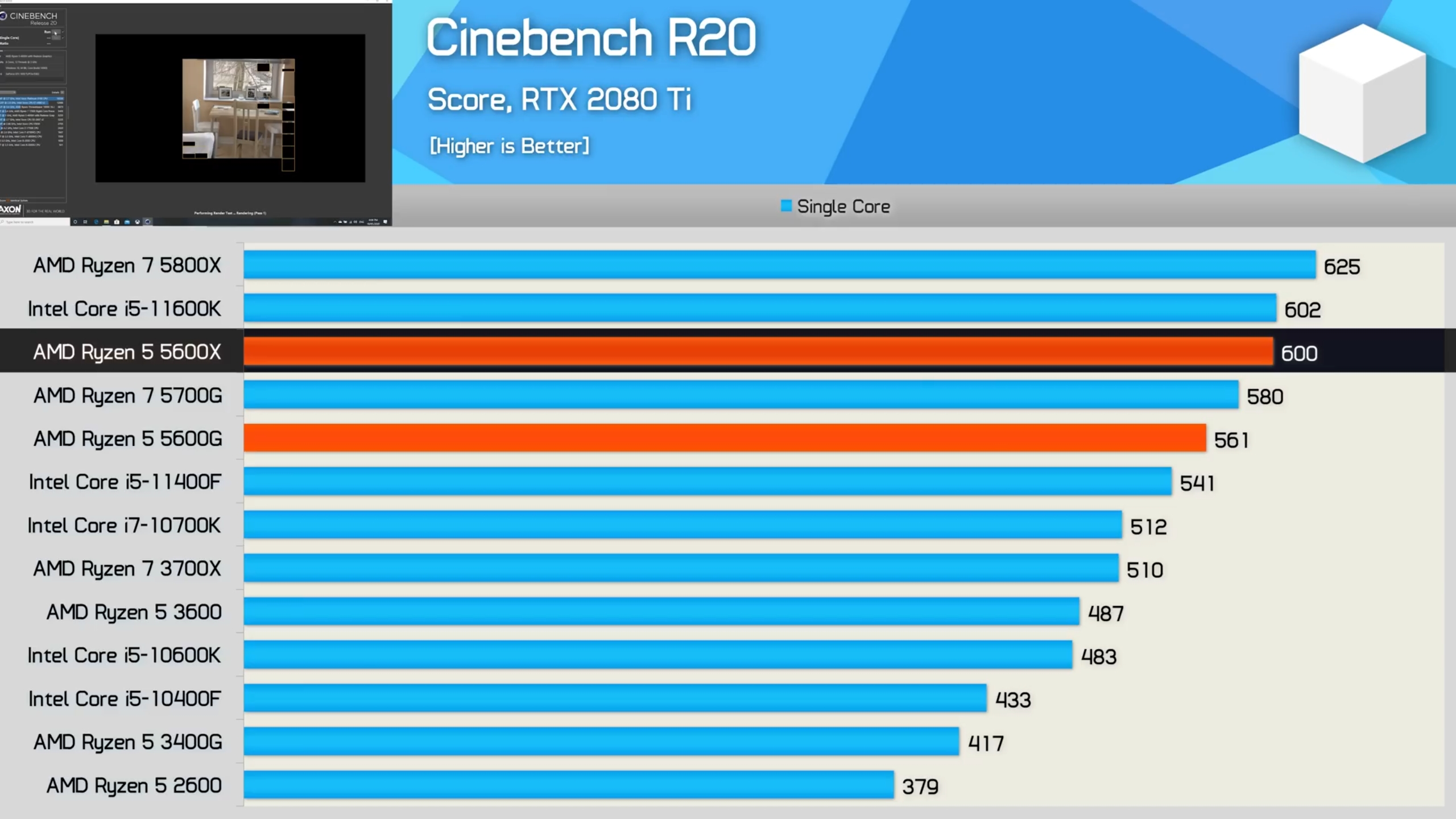 শুধু তাই নয়, স্পেসিফিকেশনেও রয়েছে পার্থক্য, Ryzen 5 5600G তে L3 Cache 16MB, অন্যদিকে 5600 এ 32MB। Ryzen 5 5600G PCIe 3.0 ইন্টারফেস সাপোর্ট করে, অপরপক্ষে Ryzen 5 5600 সাপোর্ট করে PCIe 4.0। এগুলোর জন্য পারফর্মেন্স এও বেশ পার্থক্য চলে আসে। বরং Ryzen 5 5600, 5600G হতে অনেকটাই বেশি পাওয়ারফুল একটি প্রসেসর। নিচে কিছু উদাহরণ দেখালে বিষয়টা নিশ্চিত হবে। আর কিছু গেমিং বেঞ্চমার্কে বিষয়টা আরো বেশি স্পষ্ট হয়ে যায় যে 5600 বা 5600X থেকে 5600G এর ব্যবধান আসলে কতটা বেশি।