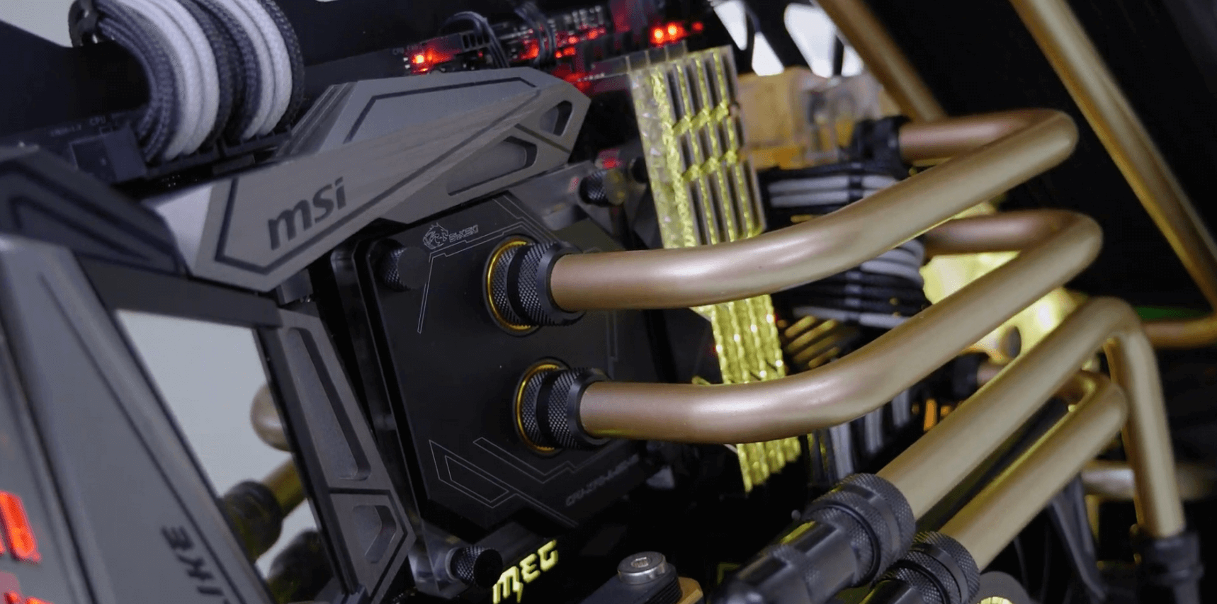 For the motherboard, the owner has selected MSI MEG Z390 GODLIKE. Both in terms of VRM performance and design, undoubtedly this is one of the best motherboards around and the perfect choice for this special build.