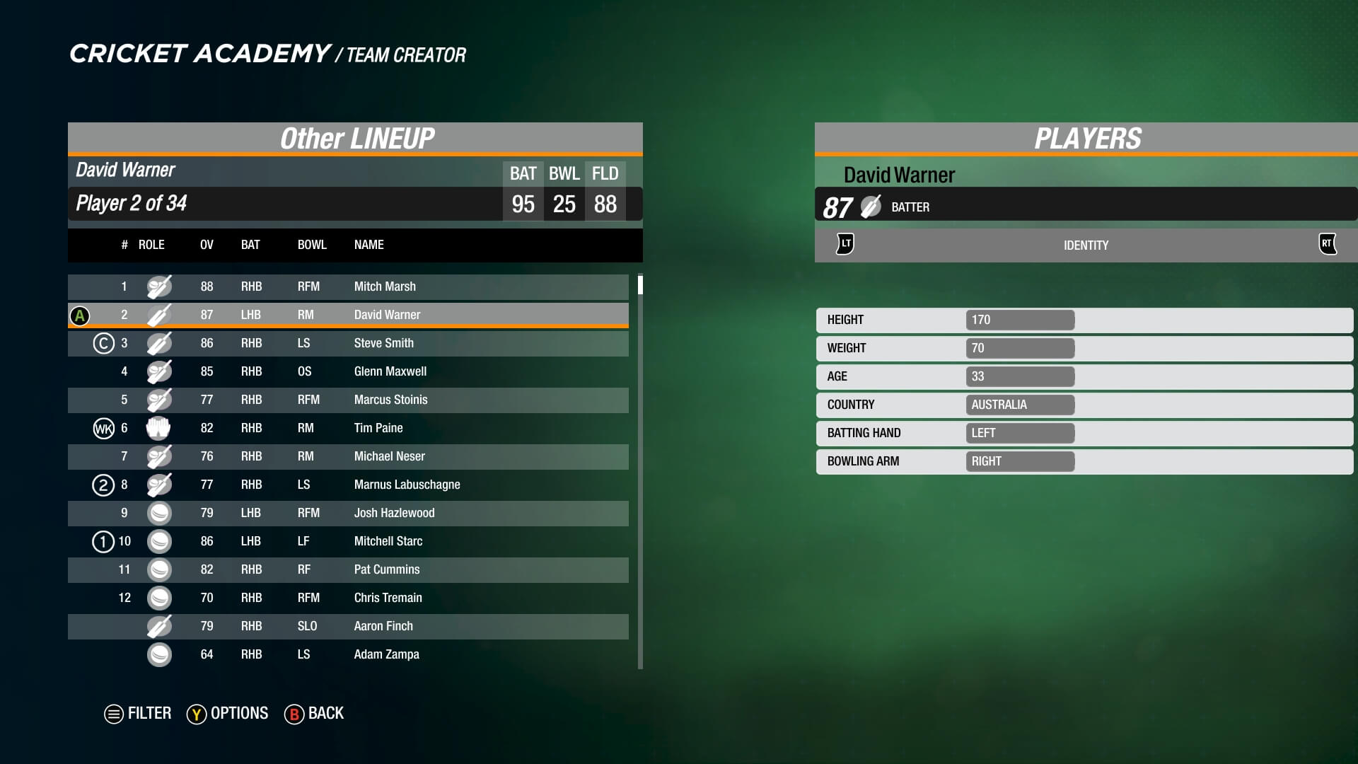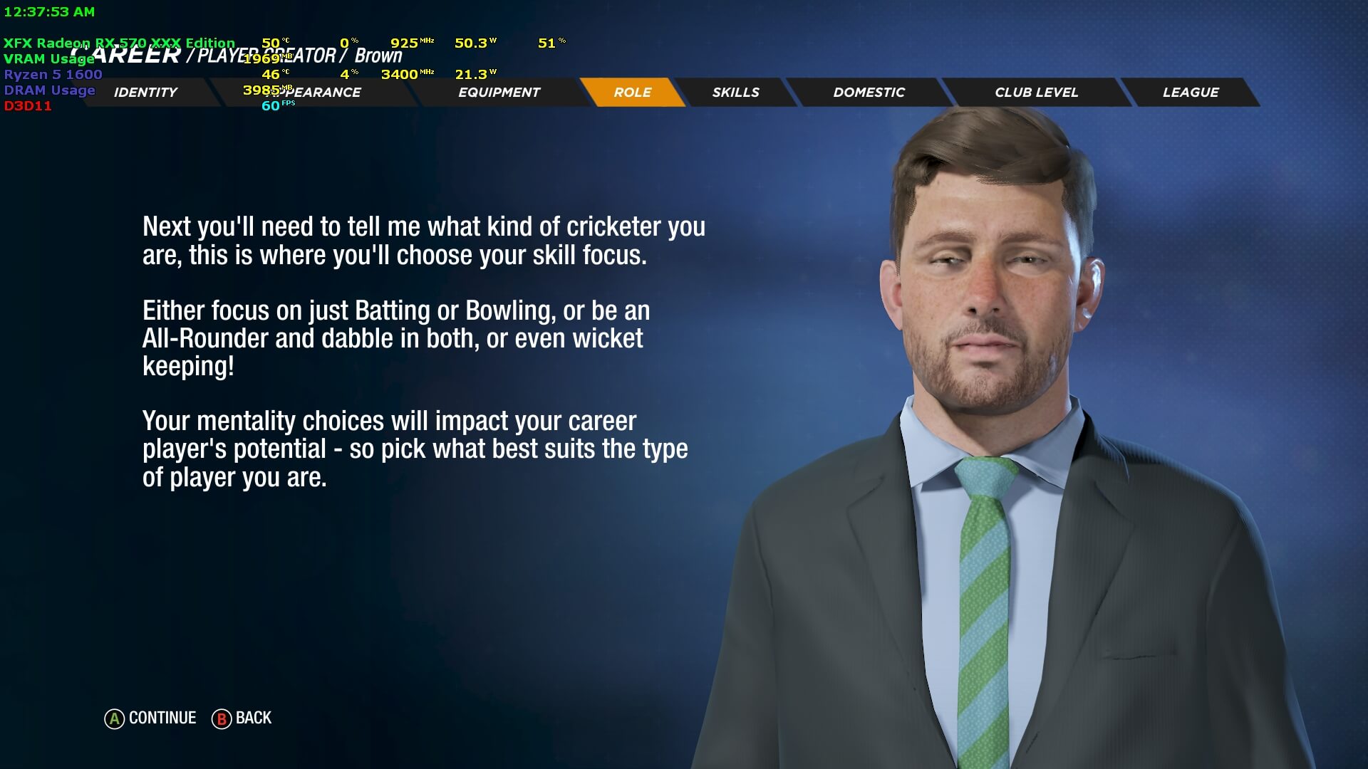 সাথে থাকবেন একজন কোচ। ক্যারিয়ারের শুরু আগেই একটি মেনুতে প্লেয়ারের নাম, ভয়েস,শর্টনেম,কমেন্ট্রি নেম সেট করা যাবে, বডি স্ট্রাকচার,ফেস ক্রিয়েট করা যাবে, প্লেয়ারের batting hand,bowling hand, রোল .mentality, টিম সিলেক্ট করে নিতে হবে। তারপর শুরু হবে জার্নি।
