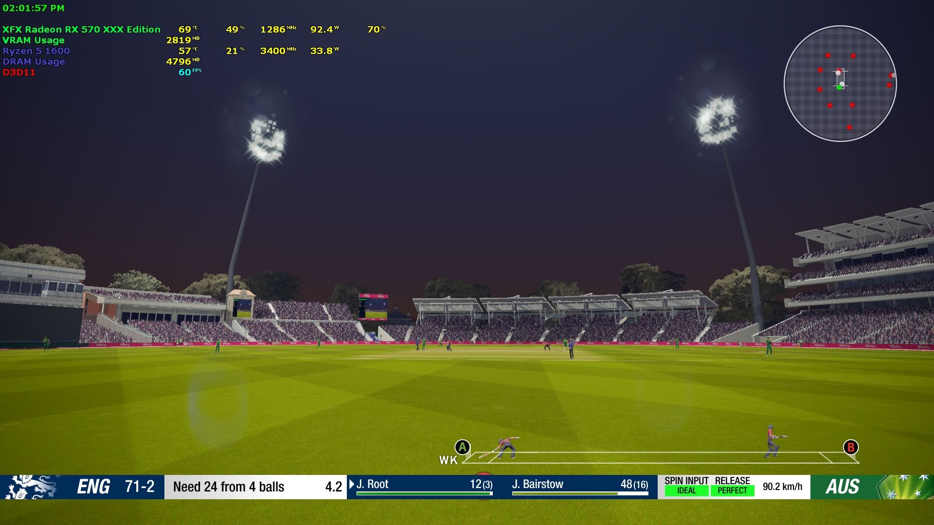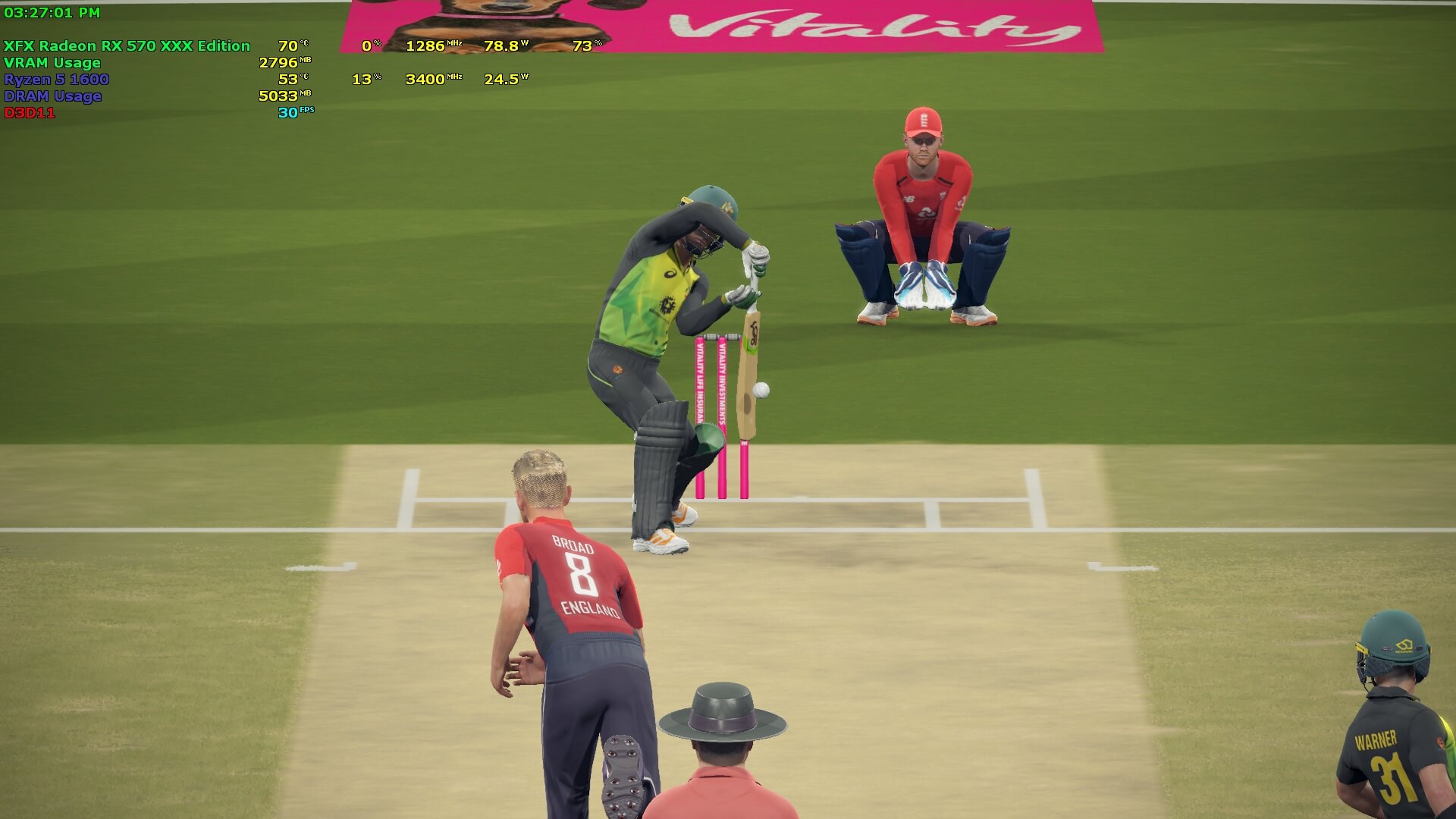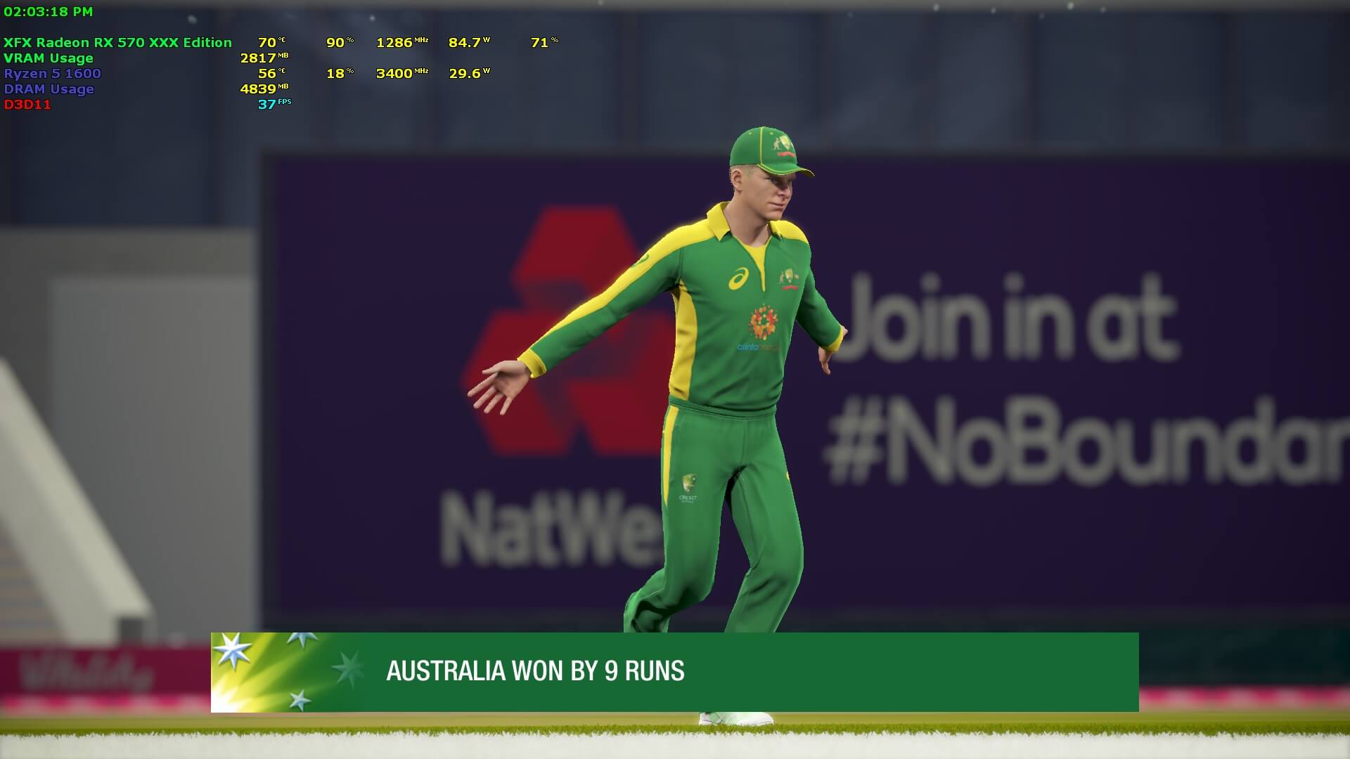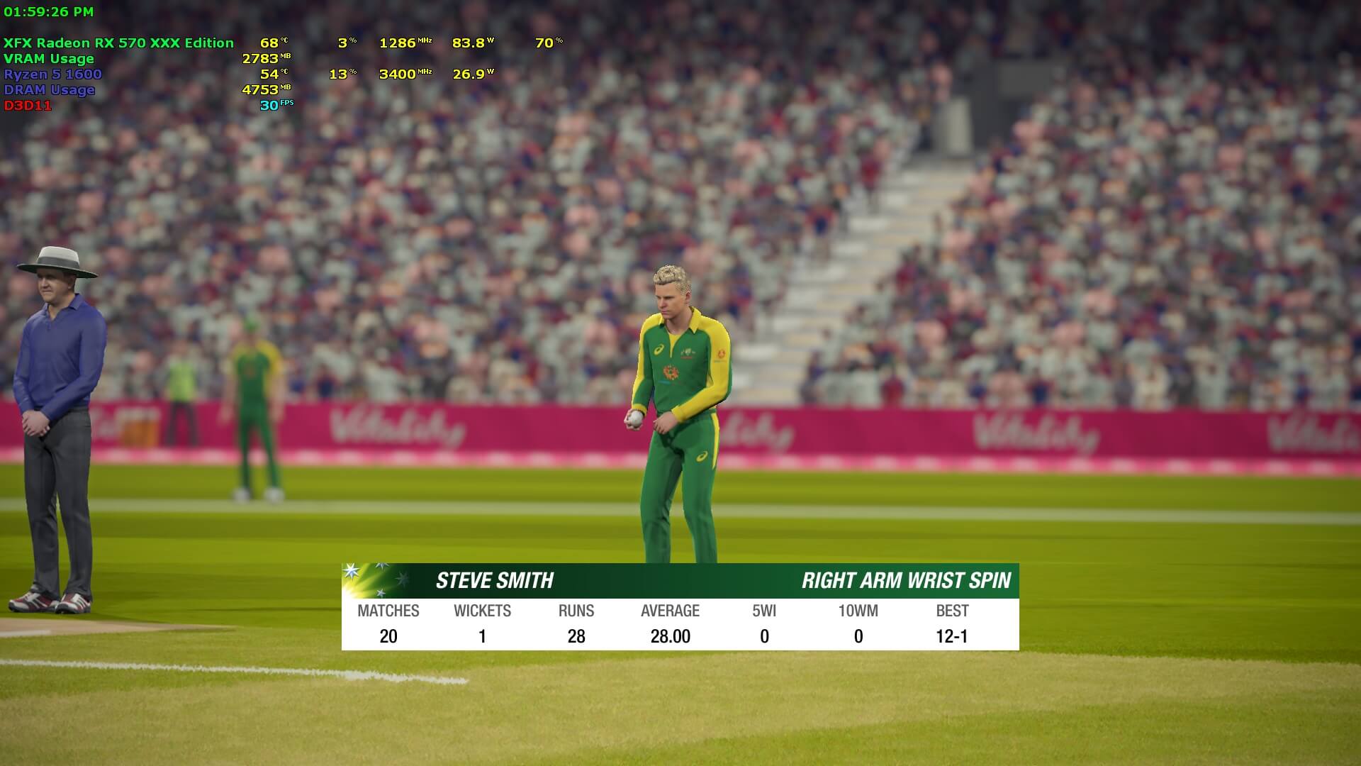 অপ্টিমাইজেশন আমি এভারেজ বলবো… গ্রাফিক্স ,ডিটেইলস যথেষ্ট ভালো হলেও… ডিফল্ট সেটিংস এ গেমটিতে আমি ফ্রেমরেট পেতাম 90-95/100 মত।। যদিও তা স্টেডিয়াম,টাইম অনুসারে বেশ পরিবর্তন হয়।।৬০ এফপিএস কে ইনাফ এবং স্মুদ গেমপ্লে এর মানদন্ড ধরলে এটাকে যথেষ্ট মনে হবে কিন্ত আমার কাছে মনে হয়েছে এর অপ্টিমাইজেশন এভারেজ … ফিফা ১৯ এ হাই সেটিংস এ DX11 আমি ১৫০-১৬০ এভারেজে পাই।। যদিও দুটি গেমের সিনারিও আলাদা।। আর ক্রিকেটের যে সিনেম্যাটিক,রিপ্লাই এইসব এর বর্ণনা দিয়েছি, সেগুলোতে প্রচুর পরিমাণে ফ্রেমড্রপ দেখতে পাওয়া যায়। গেমপ্লে এর ফ্রেমরেট এর থেকে অনেক কম।। গেমে এমনিতে ম্যাচ এ ল্যাগ স্টাটার হ্যাং ফ্রেমড্রপ একদমই নেই, কিন্ত প্রতিটি রিপ্লাই এর ক্ষেত্রে ফ্রেম রেট এর উঠানামা দেখেছি আমি।। আমার কাছে অপ্টিমাইজেশন আরেকটু ভালো হলে পারফেক্ট হতো। (উল্লেখ্য, আমি খেলেছি Ryzen 5 1600, RX 570 8GB, 8GB Ram দিয়ে) ।