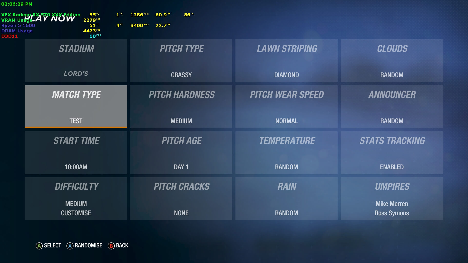 ম্যাচ সেটিংস এ স্টেডিয়াম,টাইম,আম্পায়ার,পিচ টাইপ,ম্যাচ টাইপ,weather, এনাউন্সার সহ অন্যন্য সেটিংস করতে পারবেন। স্টেডিয়াম এর অপশনে অফিশিয়াল স্টেডিয়াম রয়েছে অস্ট্রেলিয়া ও ইংল্যান্ডের বেশ অনেকগুলো।। বাকিগুলো অফিশিয়াল নয়।