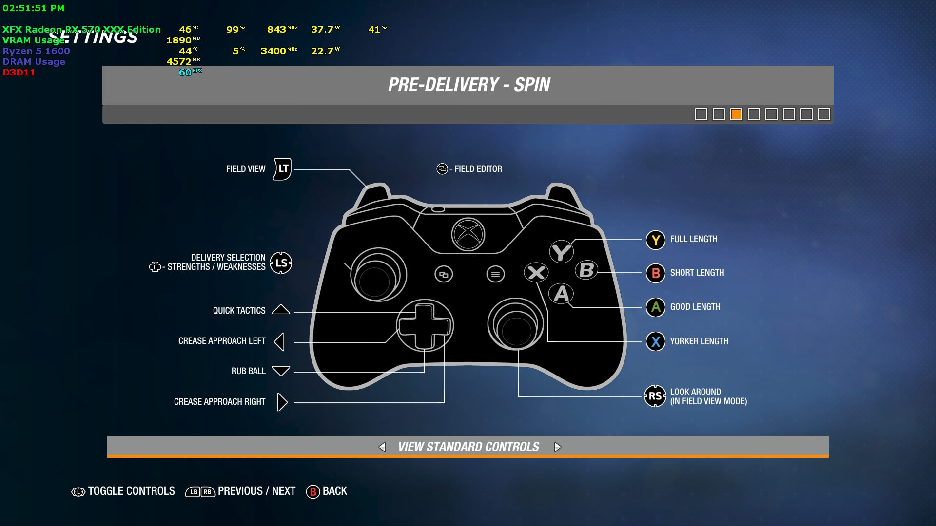 বোলিং এর ক্ষেত্রেও রয়েছে দুই রকমের কন্ট্রোল।। স্টান্ডার্ড এবং ক্লাসিক।। ক্লাসিক যথারীতি এখানেও অনেক কঠিন কিন্ত প্রো প্লেয়াররা এটাকেই বেছে নিবেন।। এখানেও সেই স্টান্ডার্ড এর ক্ষেত্রে চারটি বাটন এবং ক্লাসিকের ক্ষেত্রে LS,RS ব্যবহার করতে হবে। এখানেও ভালো বোলিং এর জন্য টাইমিং গুরুত্বপুর্ণ।। ২টি টাইমিং মিটার রয়েছে পেস বোলিং এর ক্ষেত্রে ও স্পিনের ক্ষেত্রে একটি।