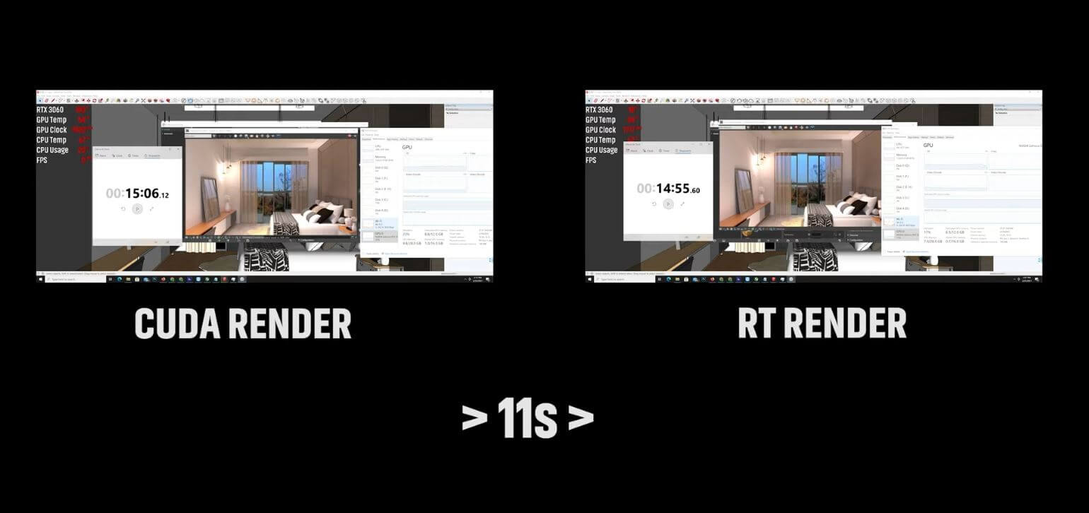 আমাদের টেস্টিং এ আমরা CUDA Core এ রেন্ডার করতে পেরেছি 15 min 6 seconds এ । আর RT Core এ রেন্ডার করতে ১০ সেকেন্ড কম সময় লেগেছে। RT Render অপেক্ষাকৃত নতুন হওয়ায় এখনো এটি দিয়ে সেরকম পার্থক্য পাওয়া যাচ্ছে না। থ্রিডি কন্টেন্ট ক্রিয়েটর দের জন্য কার্ডটির 12GB মেমোরি ক্যাপাসিটি Long Run এ ভালোই সাহায্য করবে যখন বড় বড় প্রোজেক্ট নিয়ে কাজ করা হবে।