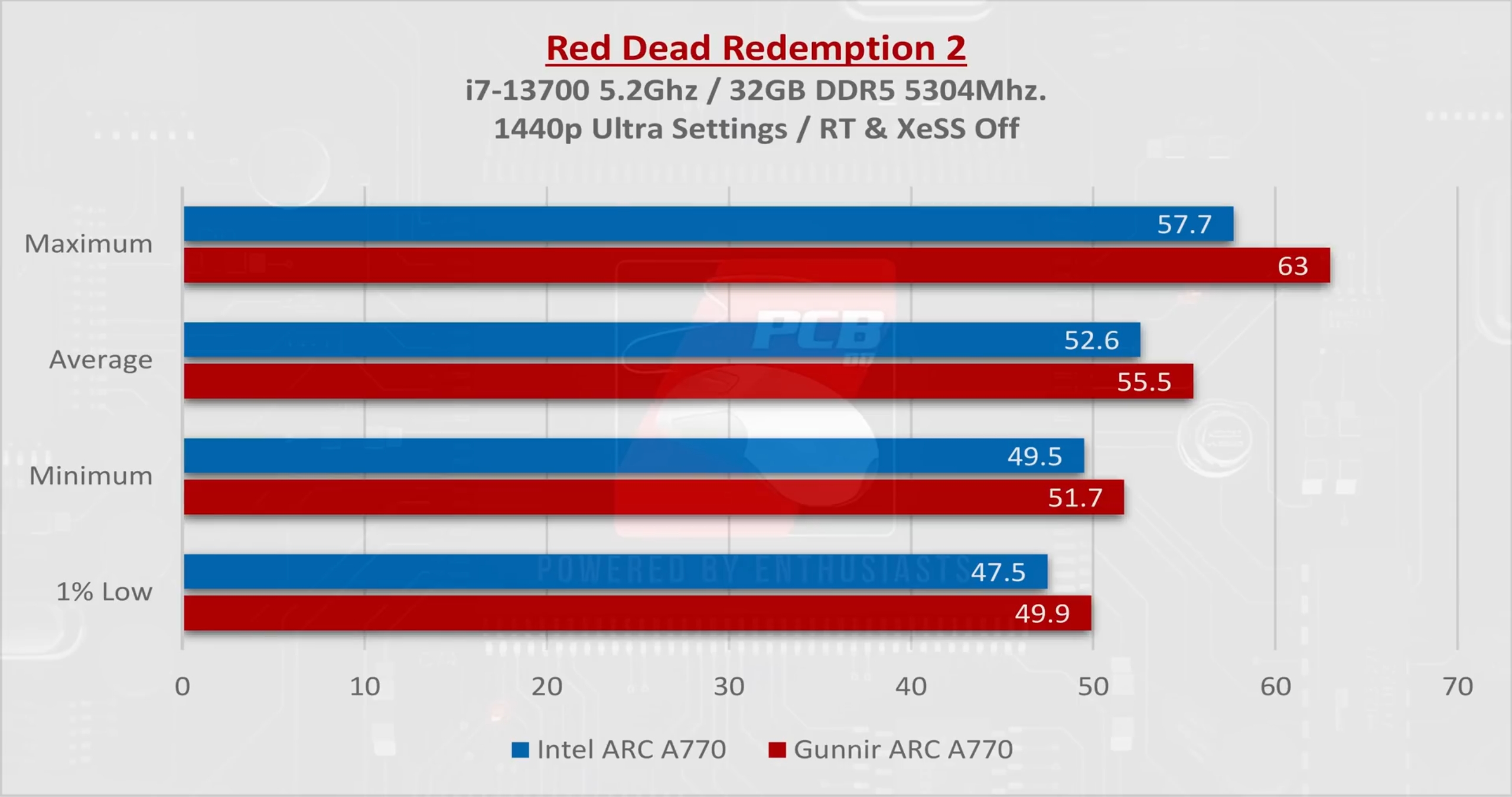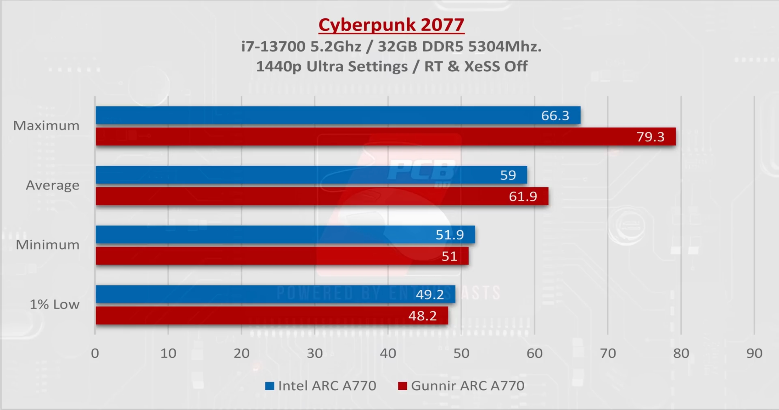 রাইজেন ফাইভ বা ইন্টেল এর কোর আই ফাইভ এর 13/12th gen প্রসেসর এর বিল্ড গুলোতে আর্ক A770 পেয়ার করলে প্রায় সব টাইটেলেই 1440pতে খুবই ইজিলি ৬০-১০০ এফপিএস ভালো মতই পাওয়া যাবে, ১০৮০পি তেও বেশিরভাগ গেমেই ১০০এফপিএস বা এর আশেপাশে পাওয়া সম্ভব।
