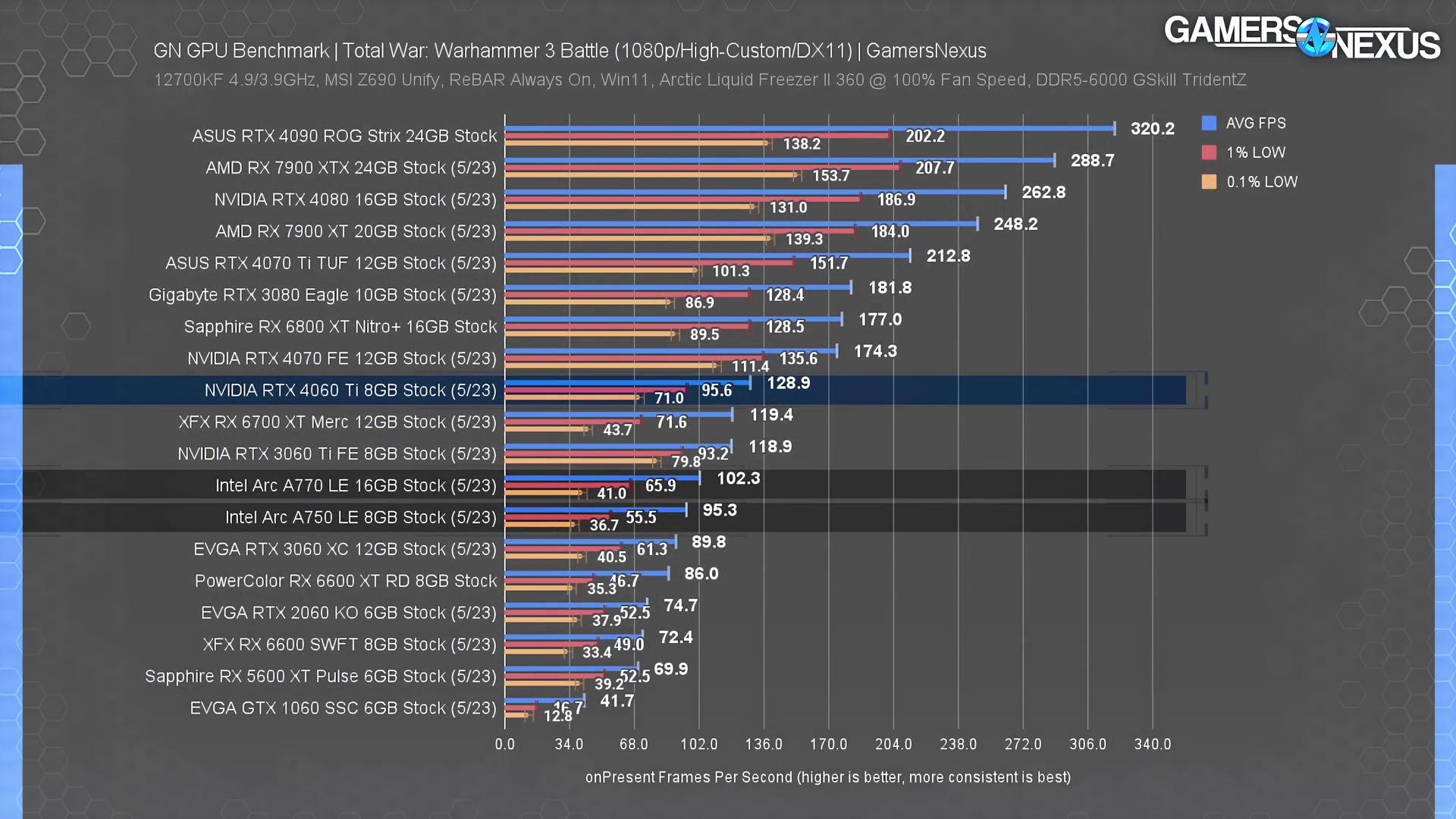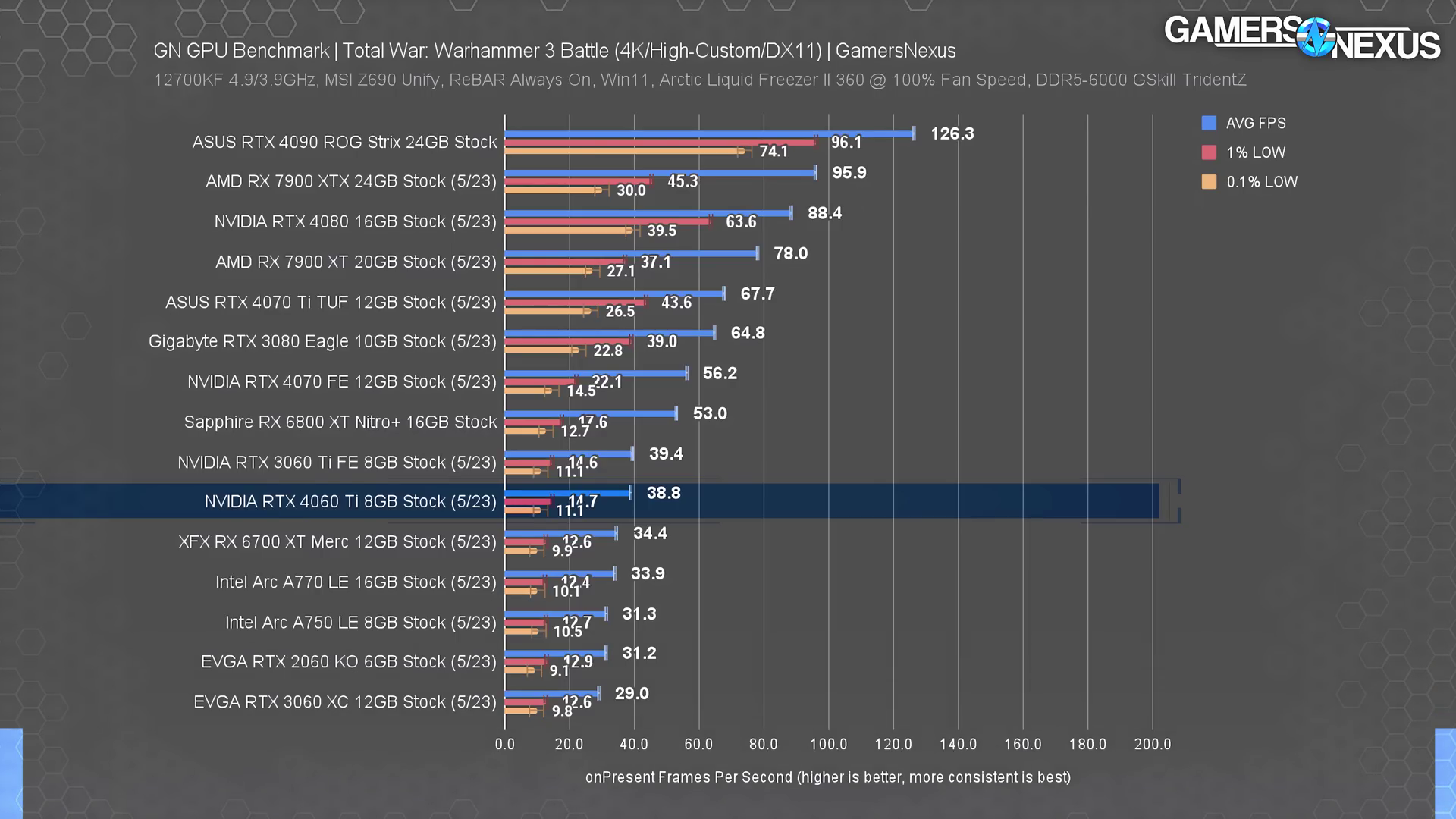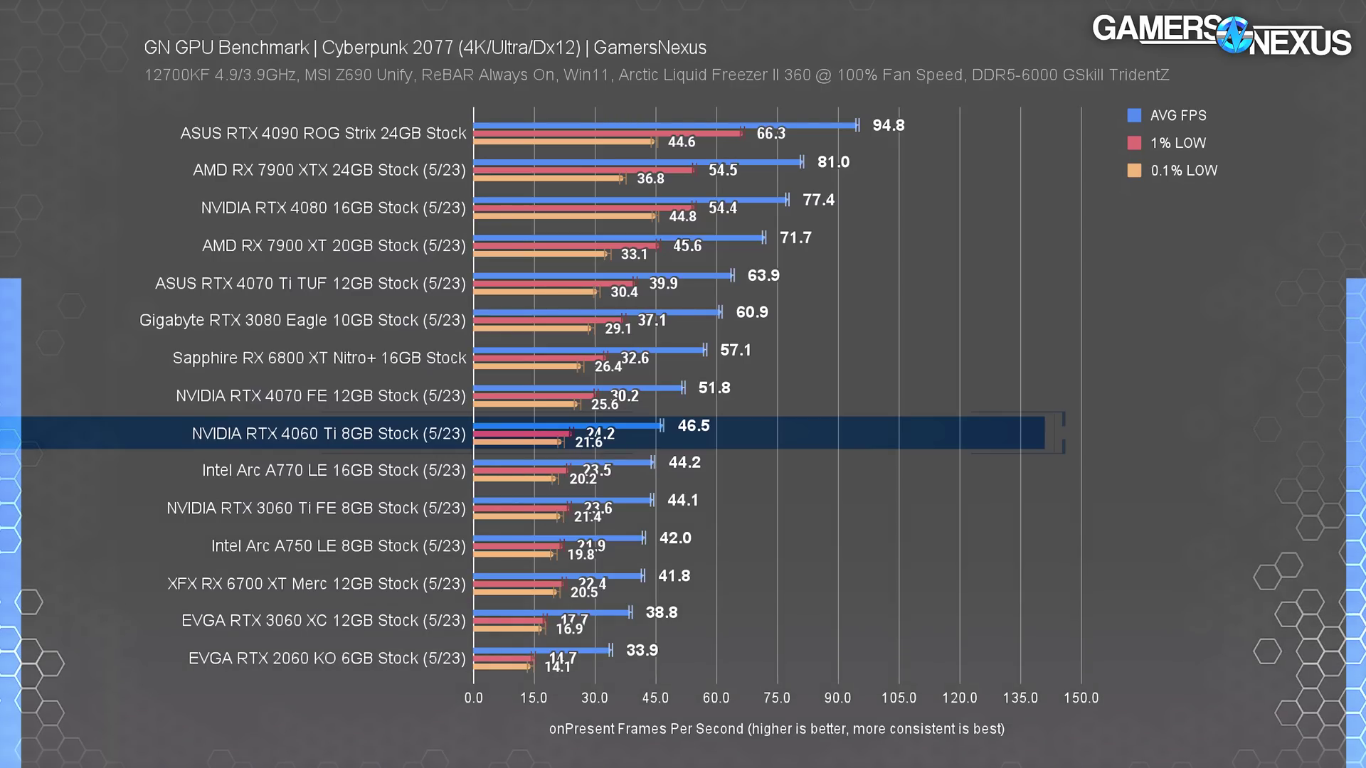 The introduction of this video was actually the conclusion. Steve said that the 4060 ti is one of the worst GPU launches by NVIDIA ever covered by them and they don’t want to waste much time. In real life scenarios the increased cache wont make any difference as the bus and bandwidth has been narrowed down. He discussed about the bad marketing of NVIDIA with game resolutions. Other cheaper 60 class Cards from the older gens were pushed for FHD gaming 5/6 years ago.