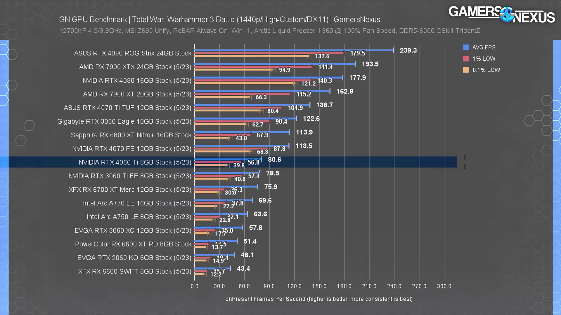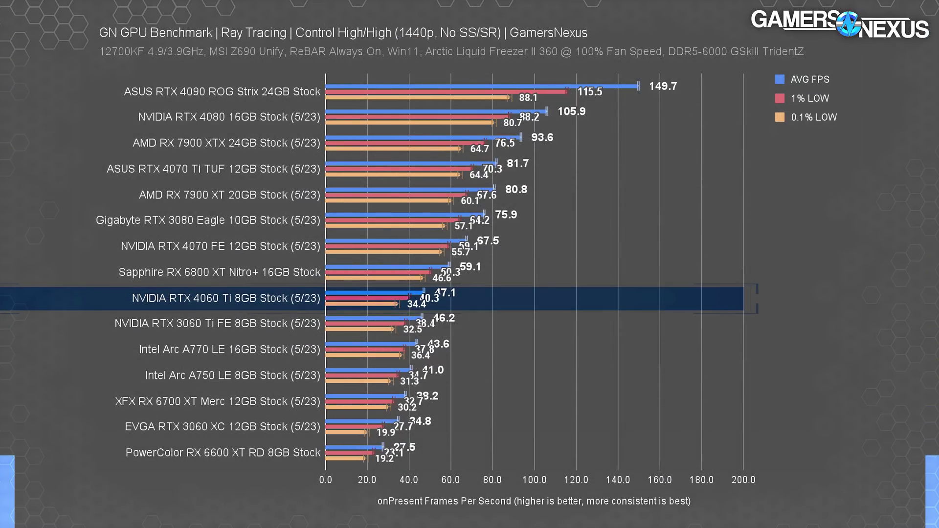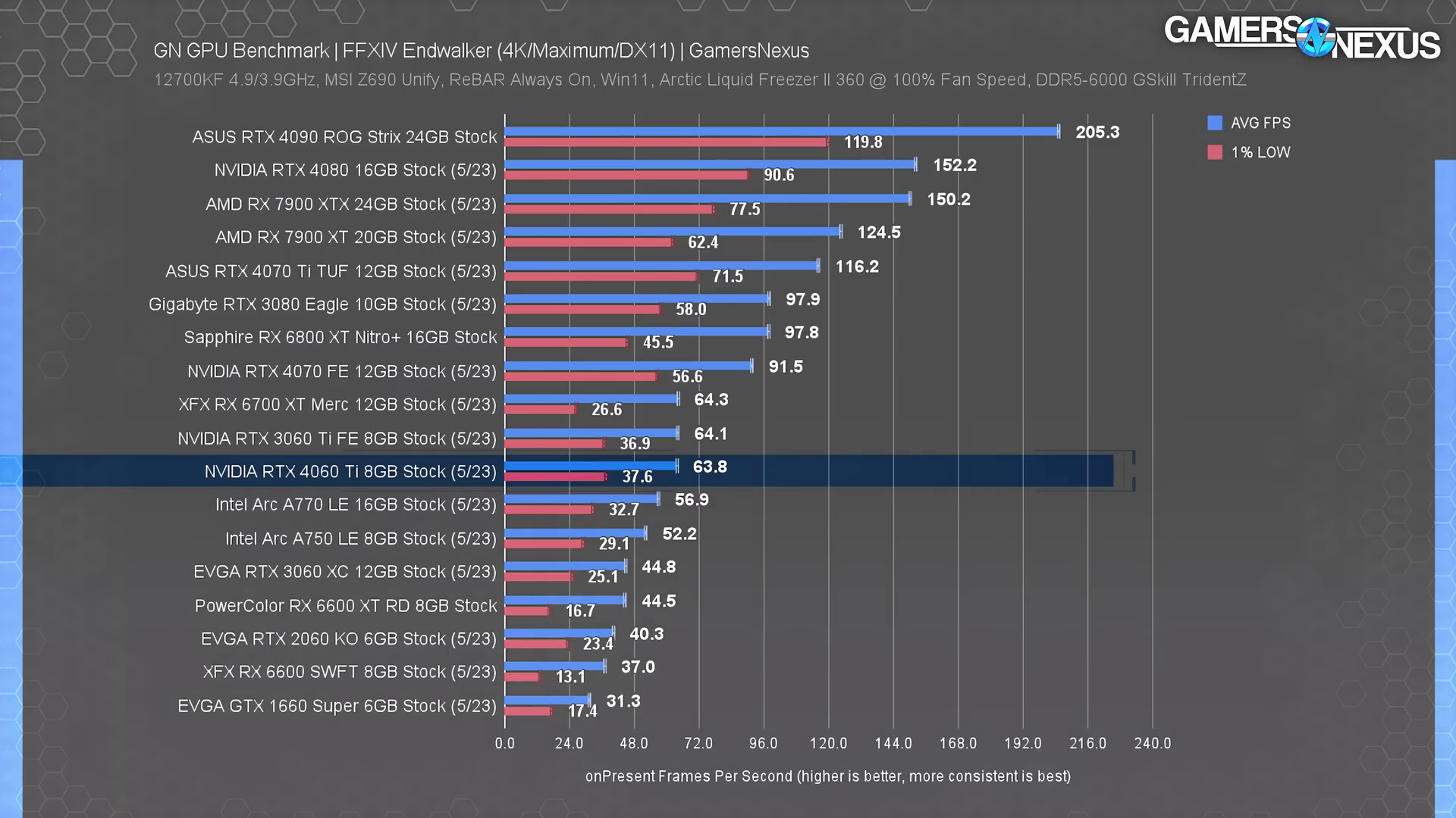 The introduction of this video was actually the conclusion. Steve said that the 4060 ti is one of the worst GPU launches by NVIDIA ever covered by them and they don’t want to waste much time. In real life scenarios the increased cache wont make any difference as the bus and bandwidth has been narrowed down. He discussed about the bad marketing of NVIDIA with game resolutions. Other cheaper 60 class Cards from the older gens were pushed for FHD gaming 5/6 years ago.
