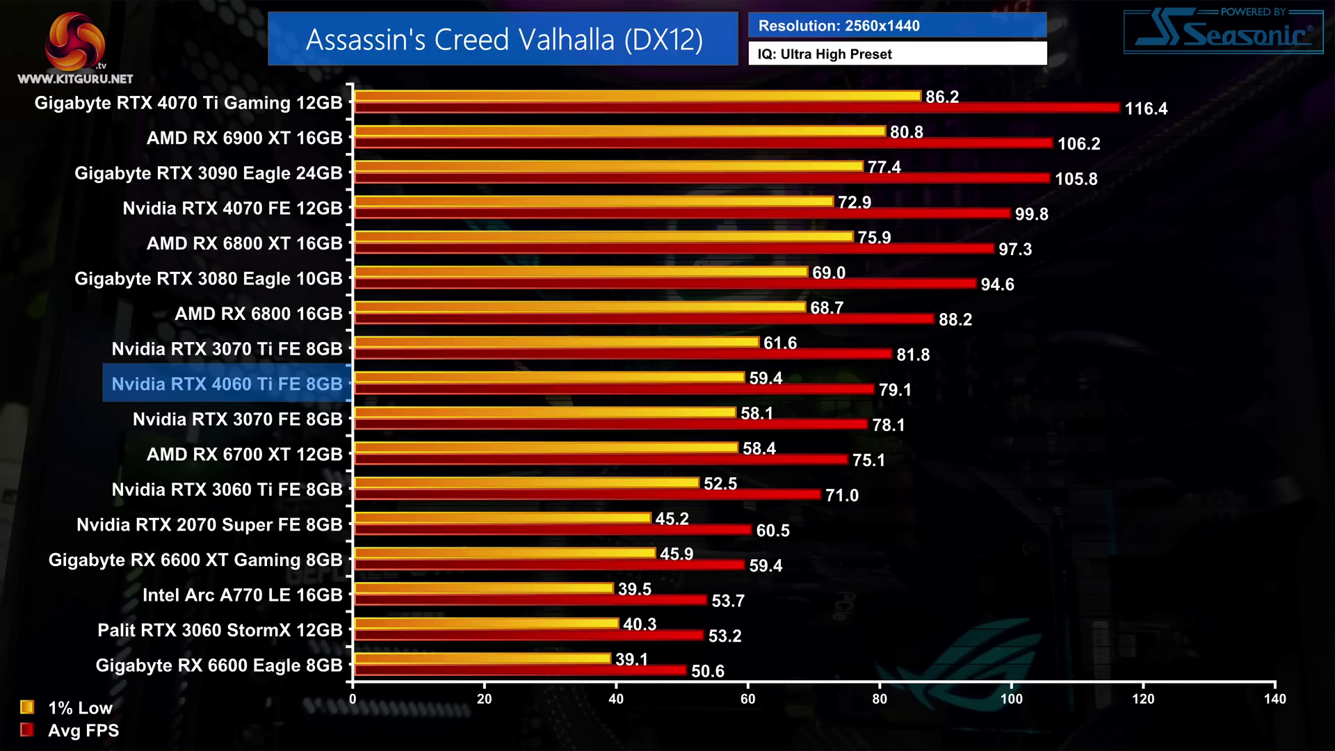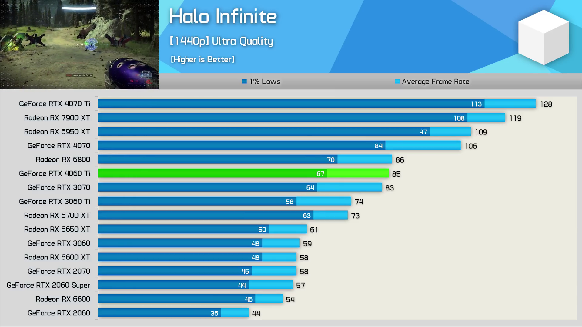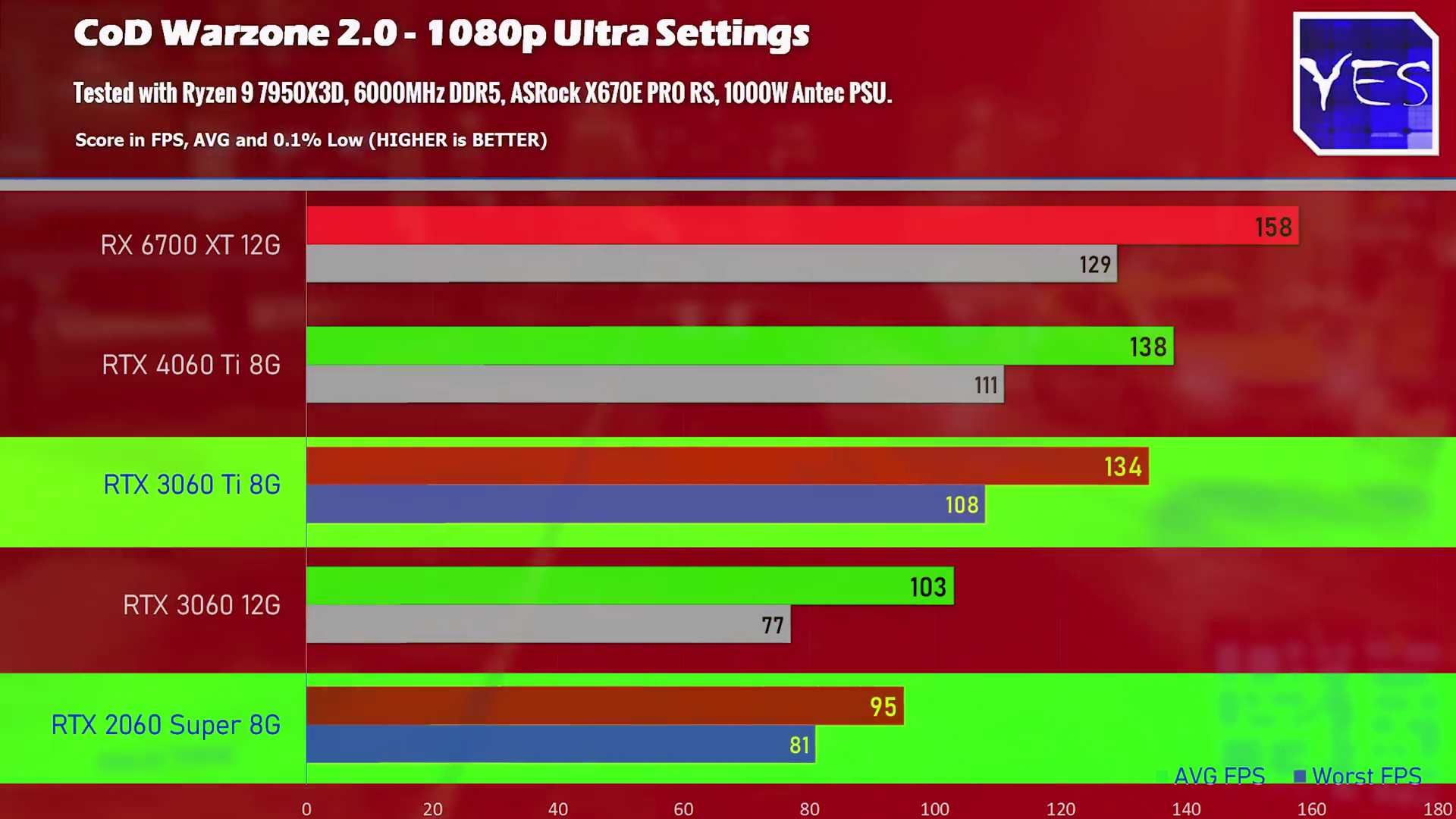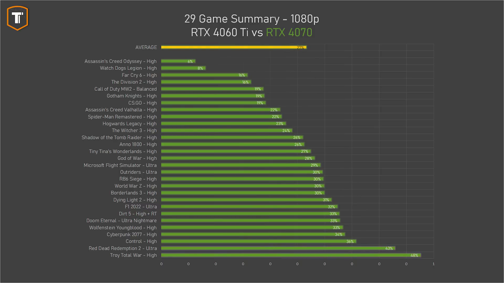 On average of 12 games, 4060 ti was 6% faster than 6700XT and 11% faster than 3060 Ti. In 1440p the gap between 3060 ti and 4060 ti was just 8% . The reason for the struggle is pretty clear, VRAM Capacity and specifications.