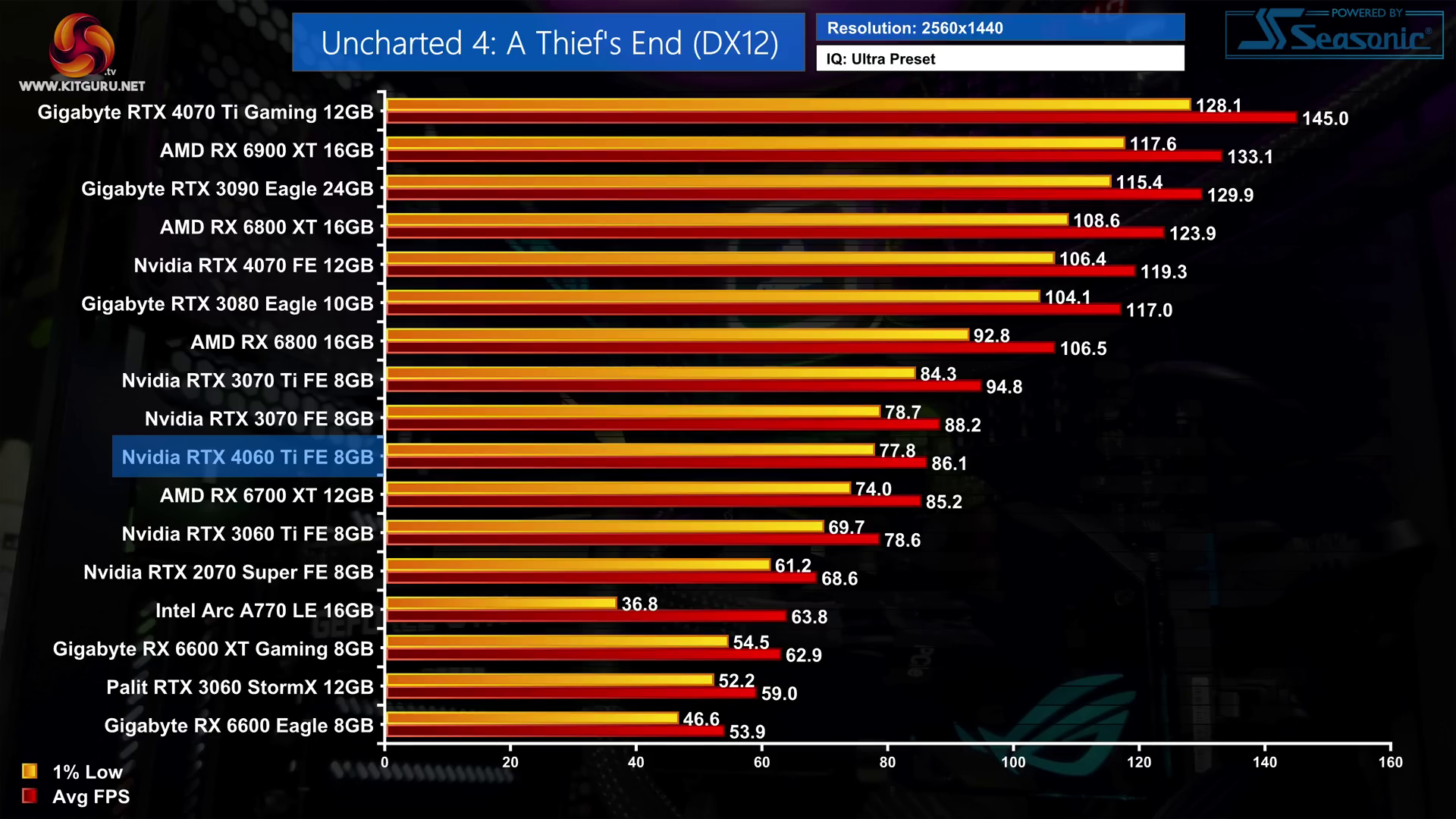 In uncharted it was 16% faster than its predecessor 3060 Ti in 1080p and 10% in 1440p.