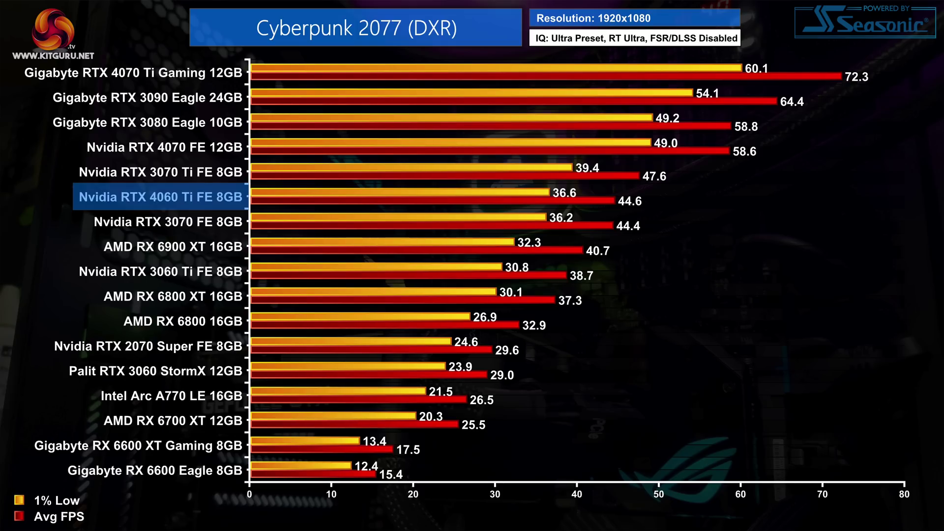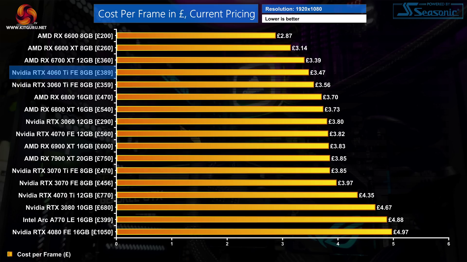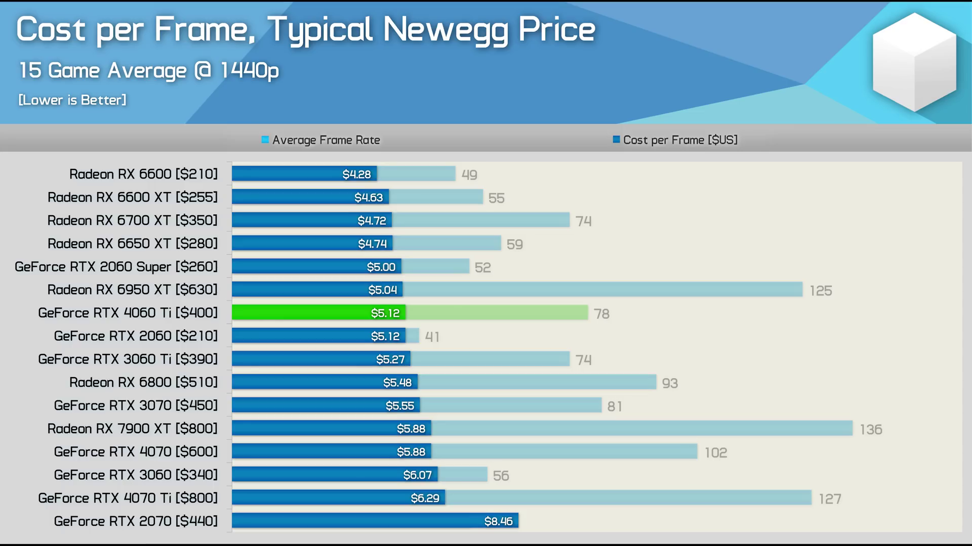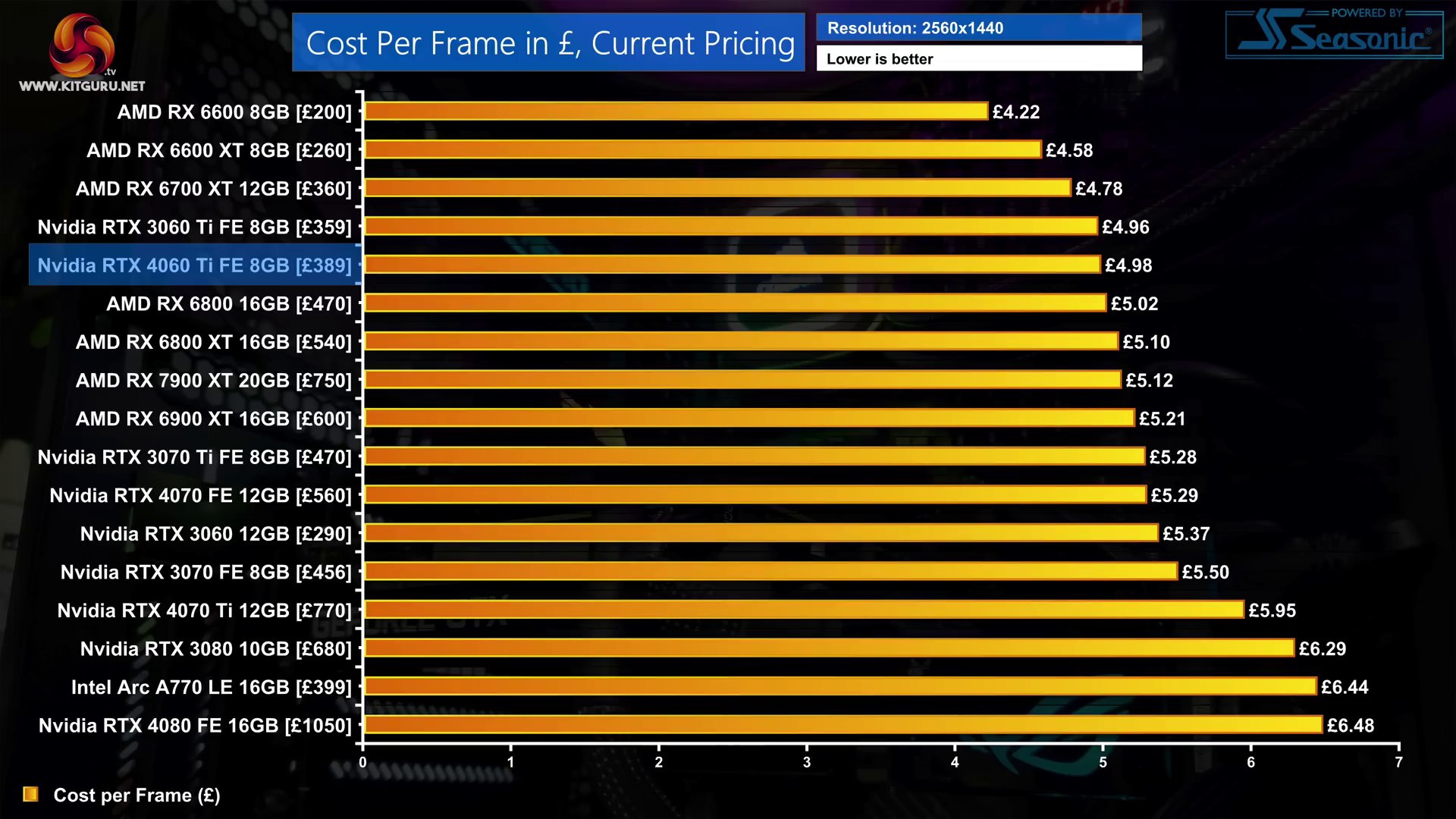 According to the current pricing, in terms of being better value for money, 4060 ti is badly beaten by 6600 XT, 6600 and 6700 XT. Worst case is, in 1440p it just matches with 3060 ti meaning that generational uplift is actually “NULL”.