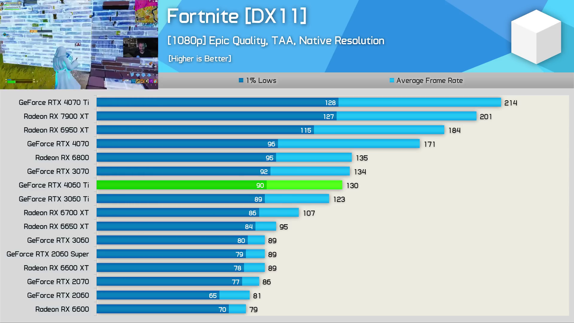 He quoted the 3060 ti performing equal to the 4060 ti as “concerning” and “embarrassing” and “ridiculous” when the performance gap was not more than 2-3fps .