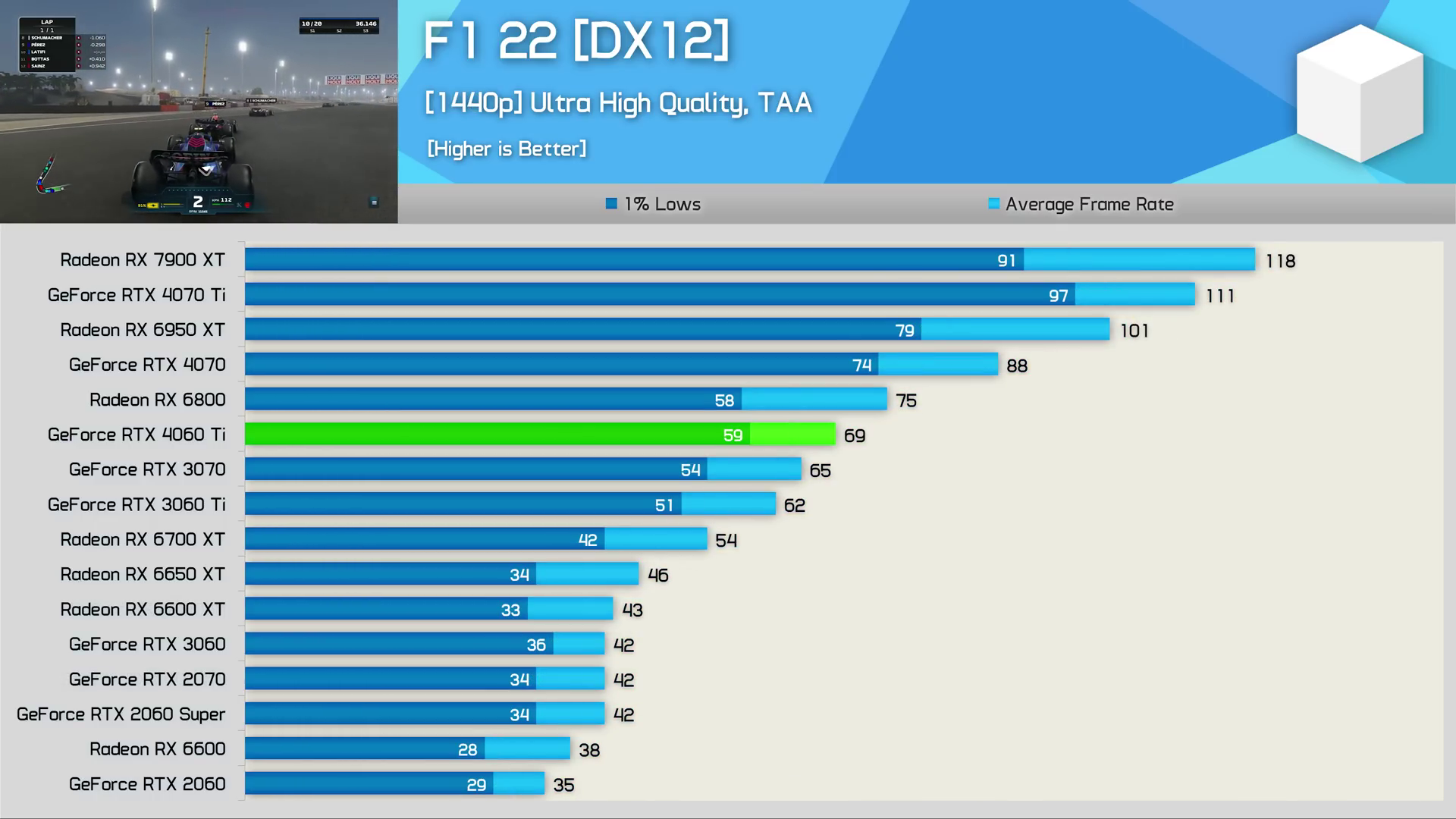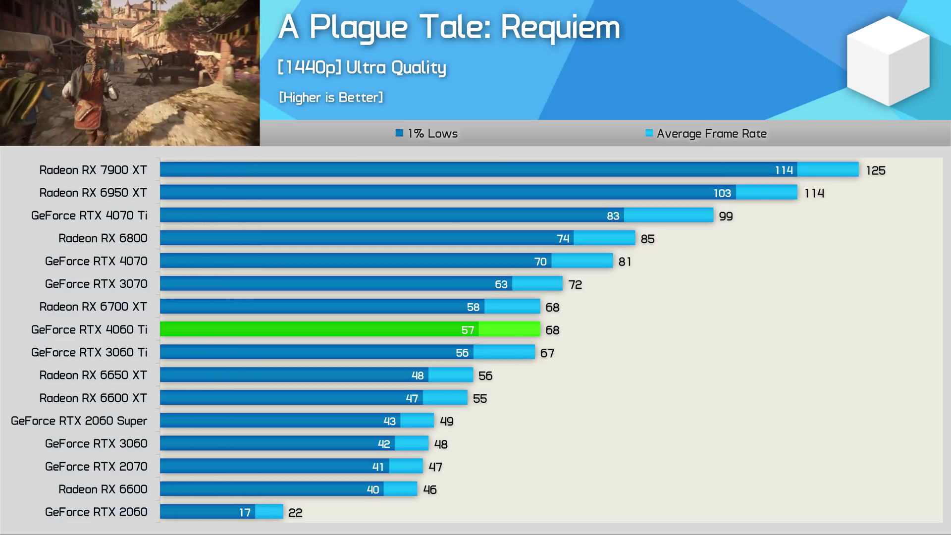 In plague tale requiem, the GPU was just 6% faster than its predecessor. Horrible! He said that performance of the test subject is decent but underwhelming in f1 2022.