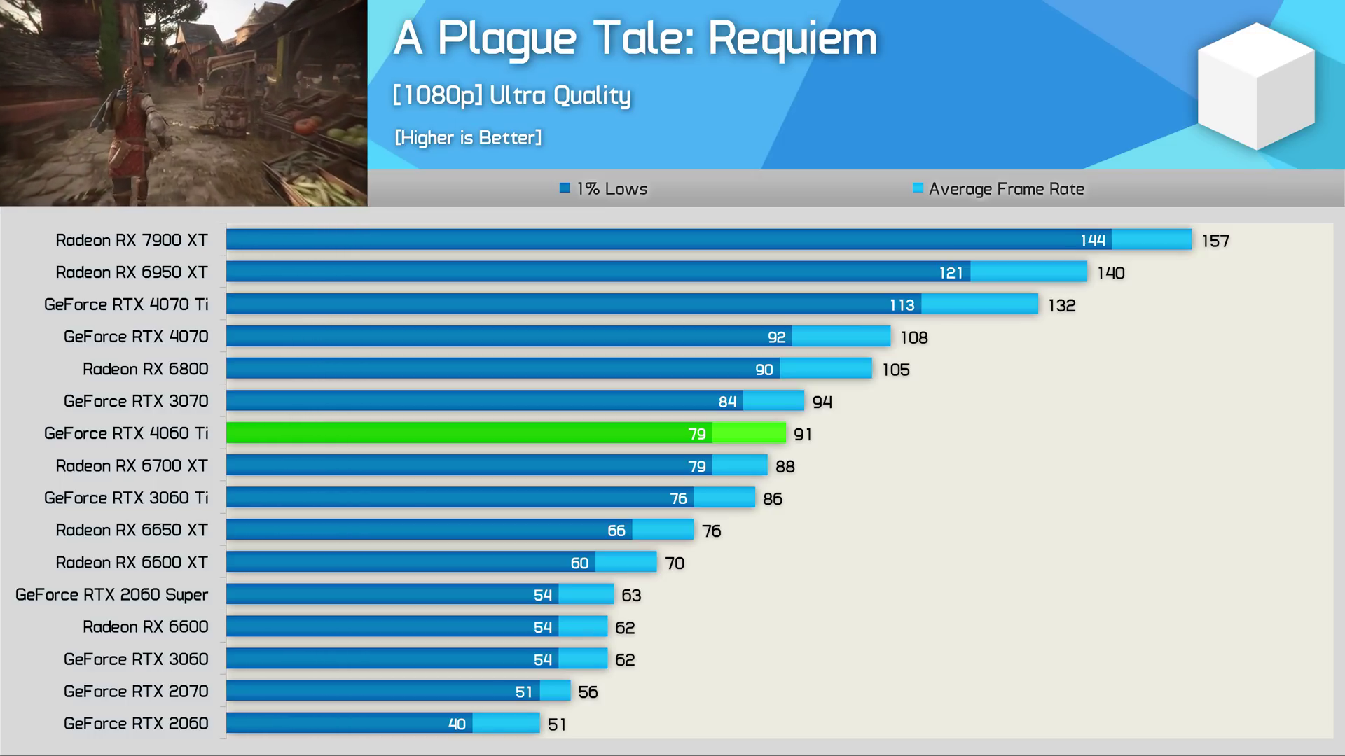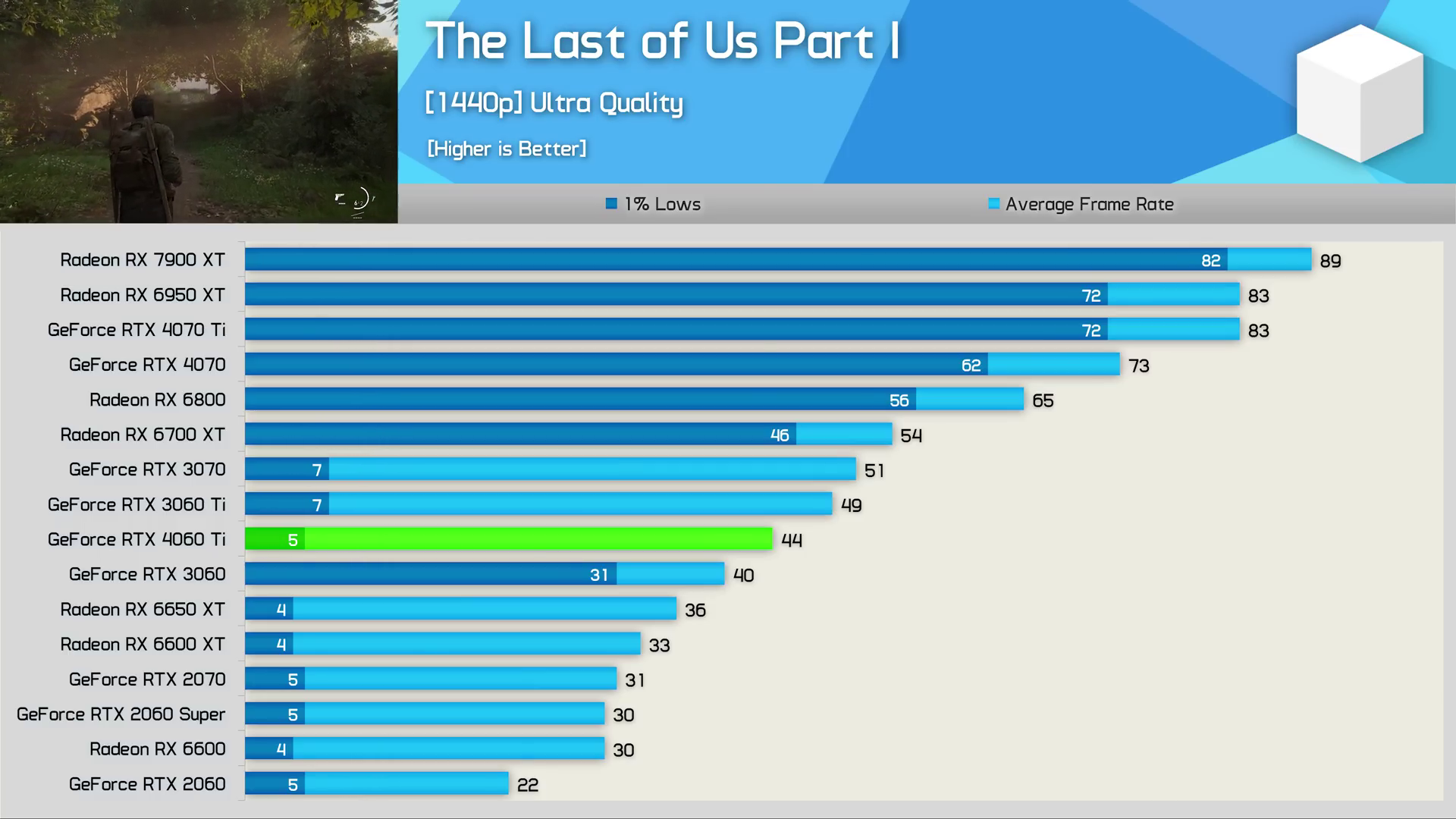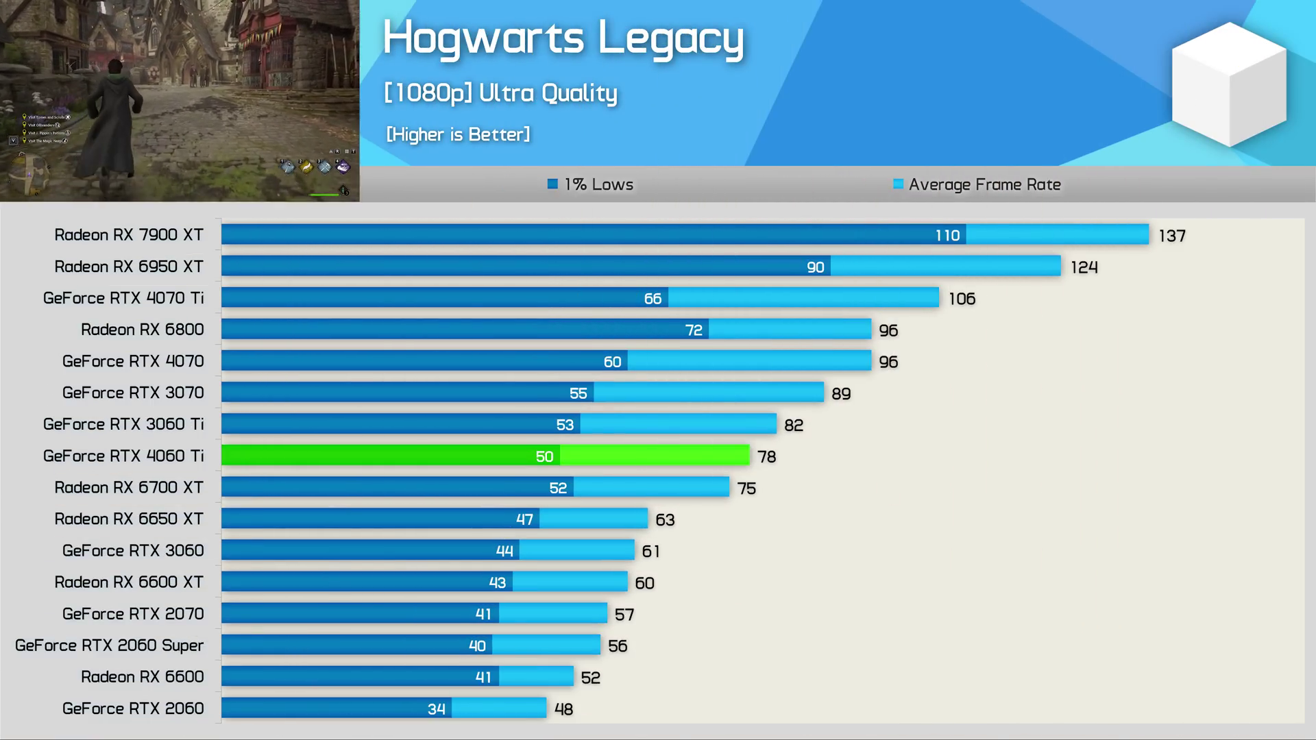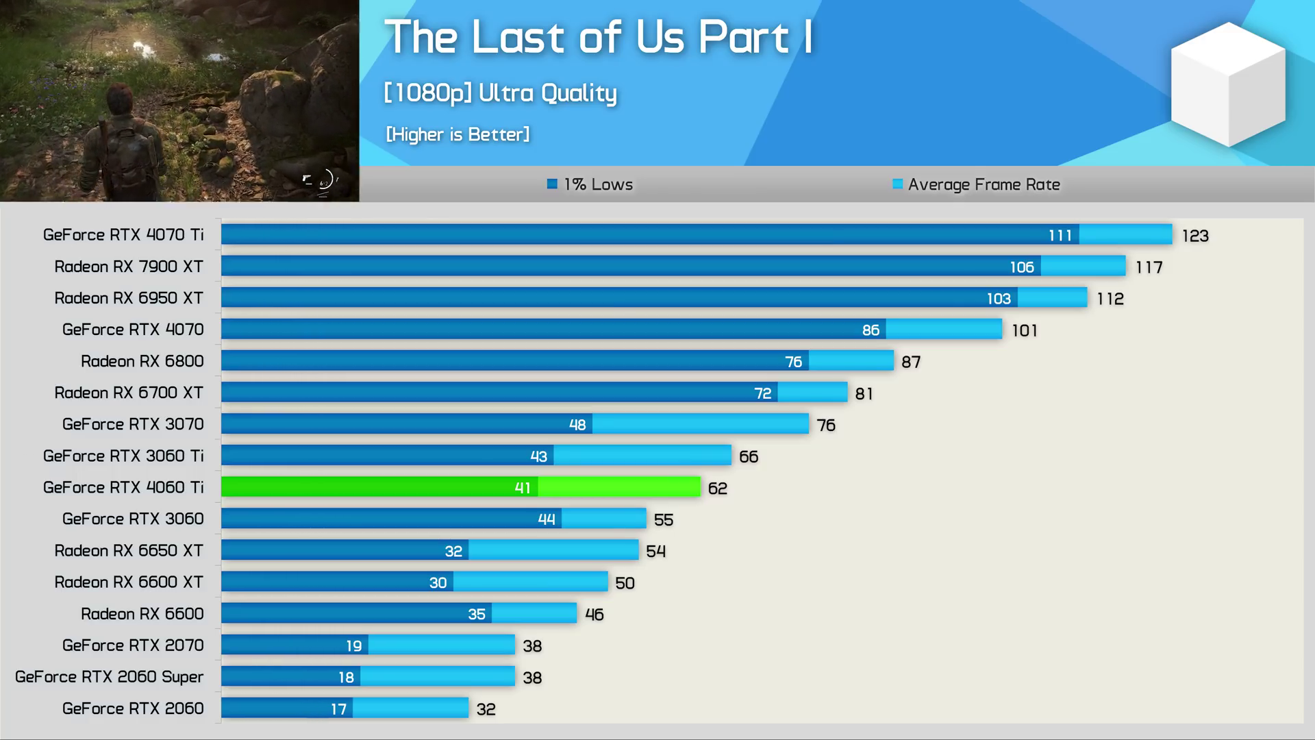 The game lagged behind 3060 ti shamelessly in Hogwarts Legacy in 1080p. The incident repeated in the Last of US Part I.