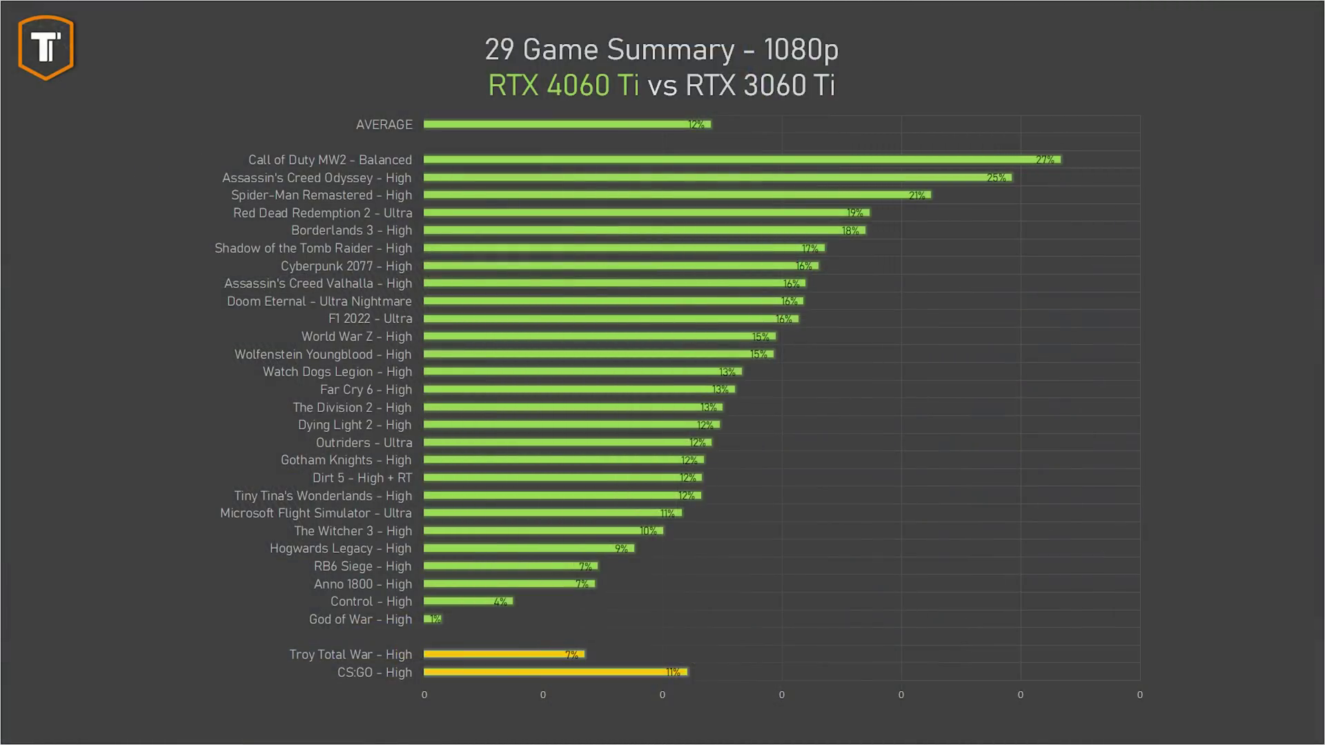 On average, the 4060 Ti was about only 9% faster than 3060 ti in 1080p and 5% in 1440p.