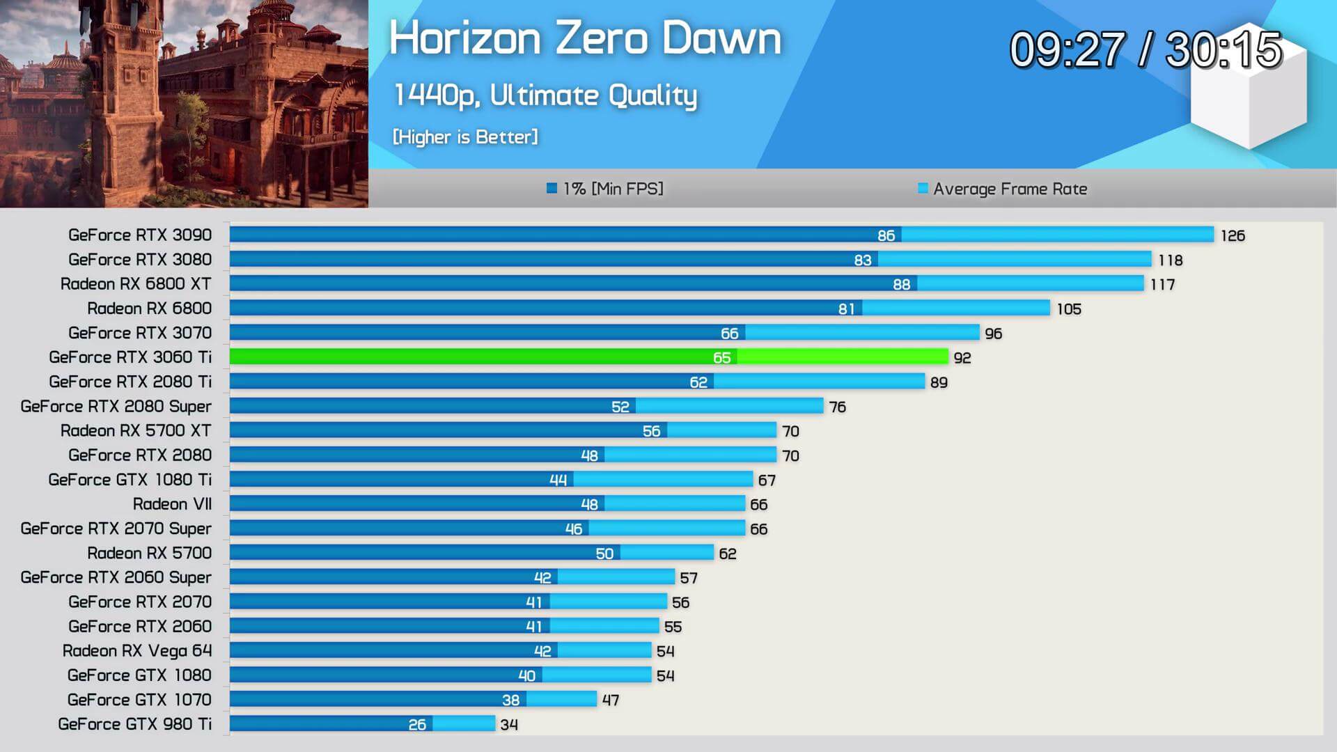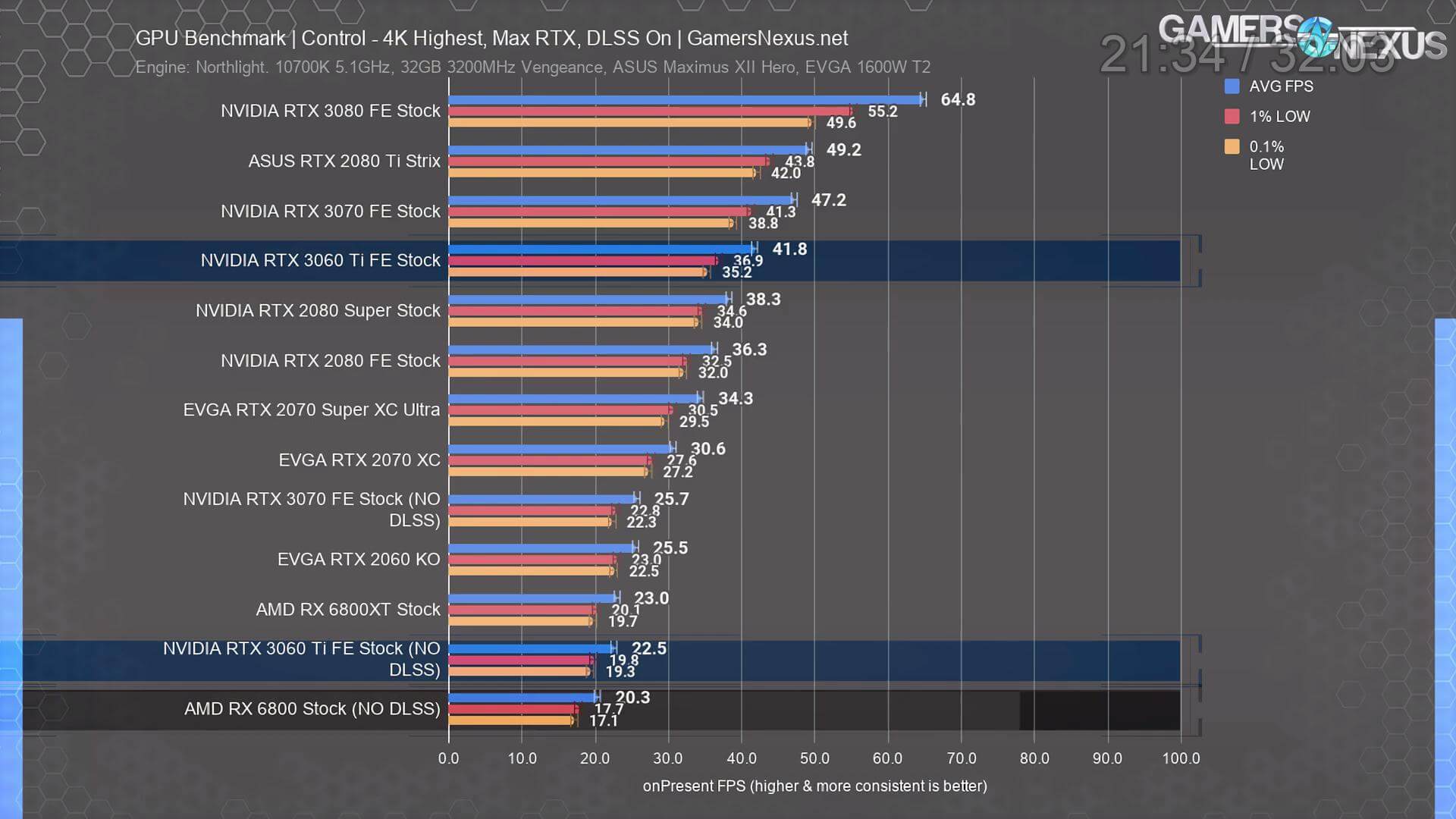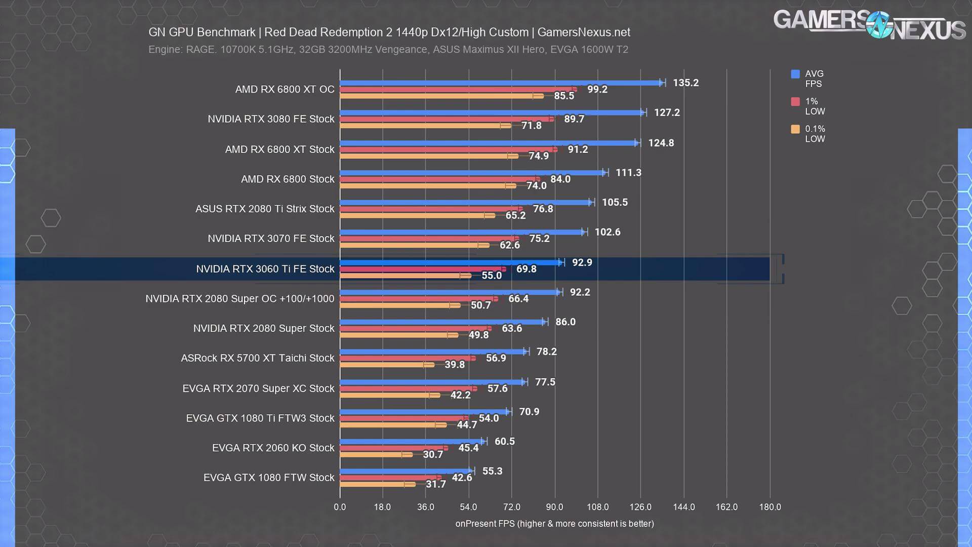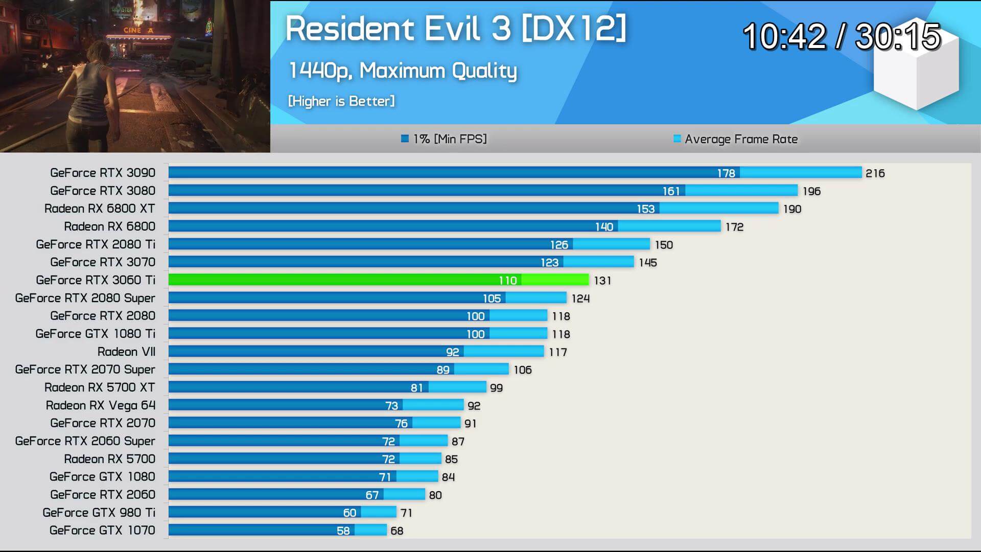স্বনামধন্য প্রায় সবগুলো রিভিউয়ারেরই RTX 3060 Ti এর রিভিউ ইতিমধ্যেই published হয়ে গিয়েছে। এখান থেকে মোটামুটি বেশ আইডিয়া পাওয়া যাচ্ছে যে গ্রাফিক্স কার্ড ইন্ডাস্ট্রিতে এর অবস্থান কোথায়। নিচে Hardware Unboxed এবং Gamers Nexus এর রিভিউ থেকে সংগ্রহীত কিছু গেমের বেঞ্চমার্ক রেজাল্ট দেওয়া হলো।