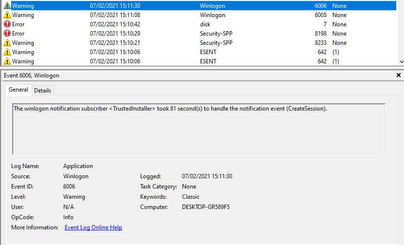 -ইভেন্ট লগে বেশ কিছু অদ্ভুত এরর।