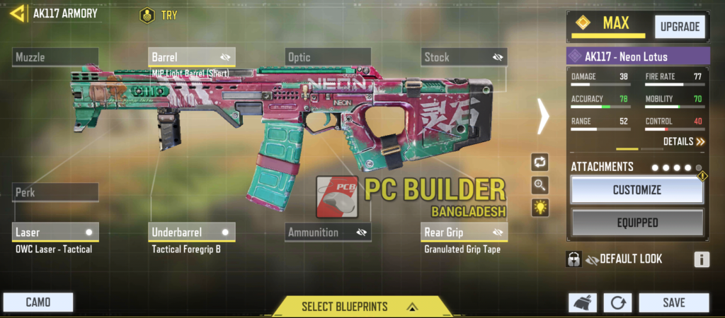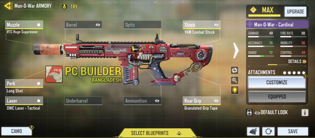 বর্তমানের সেরা Assault Rifle অস্ত্র হচ্ছে এই ম্যান-ও-ওয়ার! এই অস্ত্রটি একটি বিউটি! তিন গুলিতে শত্রু খতম! কিছুদিন আগে Barrel নার্ফ হওয়াতে এই বিল্ডটি এখন সবথেকে বেস্ট।