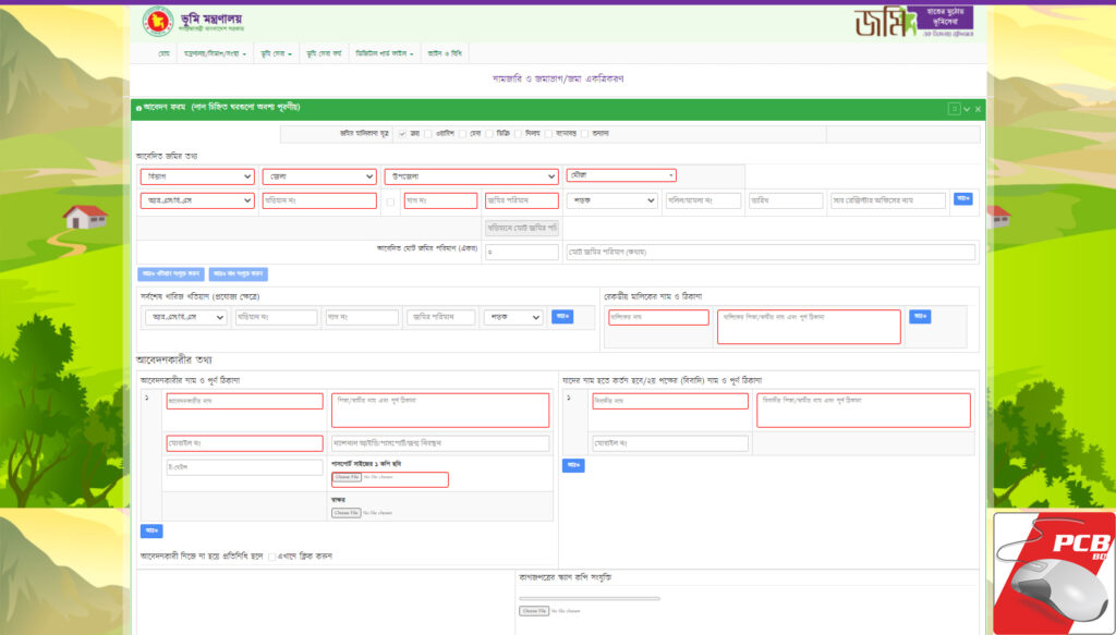 বিষয়গুলো দেখার পর উপরের “নামজারির আবেদনের জন্য ক্লিক করুন” বাটনে ক্লিক করুন। নিচের মতো একটি বিস্তারিত বিশাল ফরম আসবে