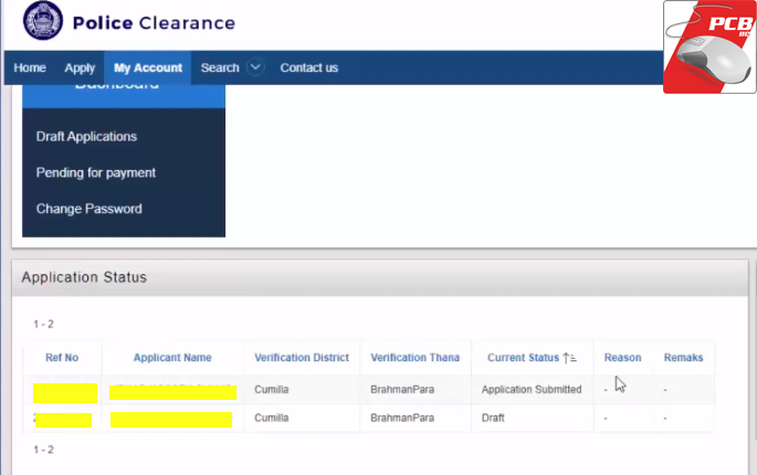 = আপনার Police Clearance Certificate BD টি সংশ্লিষ্ট মেট্রো / জেলার উর্ধ্বতন পুলিশ অফিসার কর্তৃক স্বাক্ষরিত হয়েছে। পরবর্তী কাজের একে পররাষ্ট্রমন্ত্রণালয়, ঢাকা বরাবর প্রেরণ করা হবে।