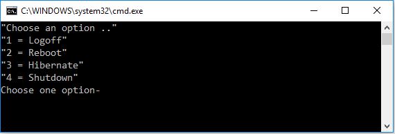 IF %option%==3 SHUTDOWN /h