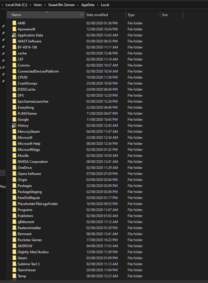 প্রথমে local এই ঢোকা যাক। এখানে আপনার ইন্সটল করা সমস্ত প্রোগ্রামেরই নাম দেখতে পাবেন।। ফোল্ডারগুলো চেক করতে পারেন। অপ্রয়জনীয় প্রচুর ফোল্ডার পাবেন, এমন প্রগ্রামের নাম পাবেন যা আপনি আনইন্সটল করে দিয়েছেন বা চালান ই না। সেগুলো ডিলিট করতে পারেন।। রিমেম্বার, এগুলো 3rd party apps, পিসির ক্রাশ, misbehave, bluescreen এর সমস্যা হবে না। দেখুন, যেমন স্ক্রিনশটে adobe ফোল্ডার রয়েছে, অথচ স্ক্রিনশট নেওয়ার সময়ে আমার পিসিতে এডোবির প্রোডাক্ট ছিল না(photoshop,preimiere pro,illustrator আগে ছিল uninstall করেছিলাম)।